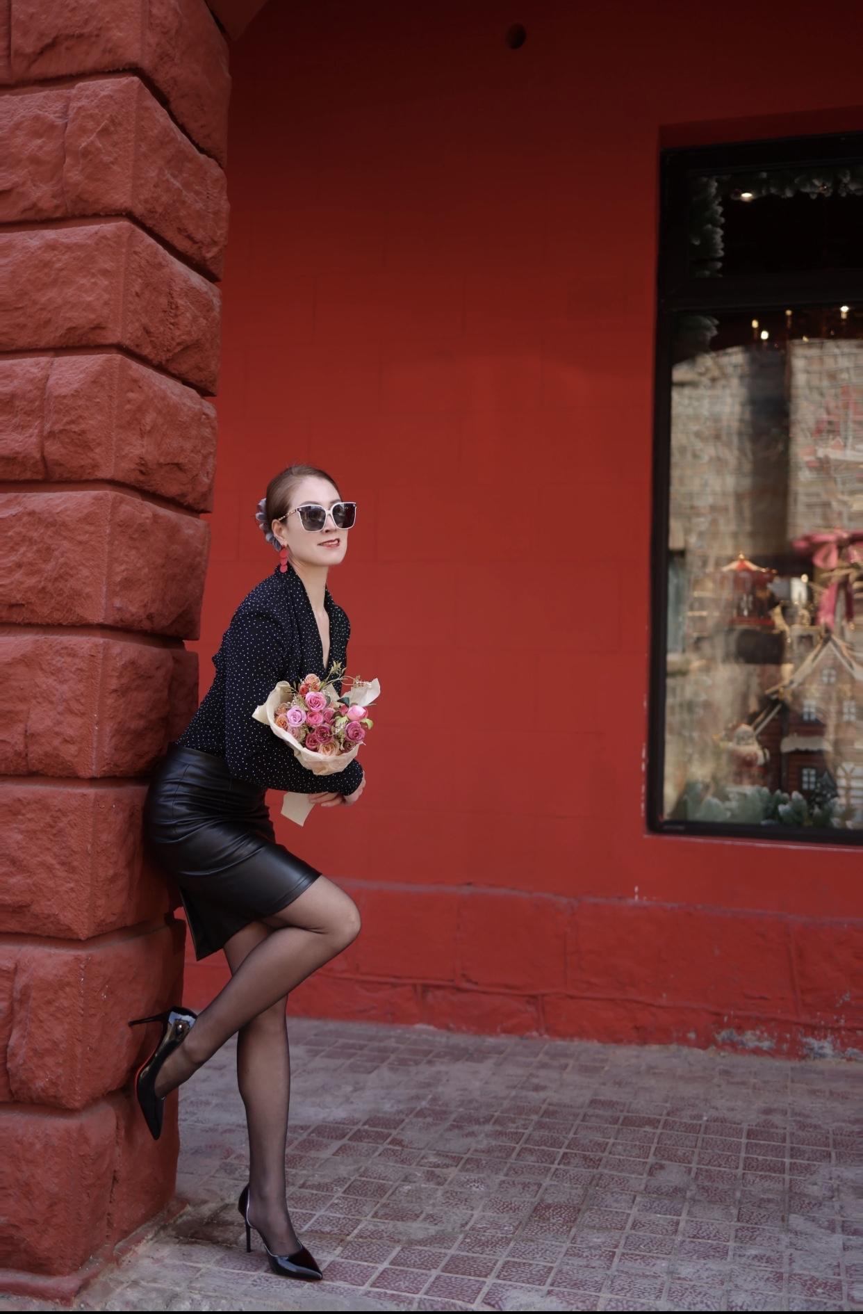还有坐着时交叉双腿,优雅又带点神秘,让人忍不住多瞧两眼。站着穿鞋子,要是做得自然