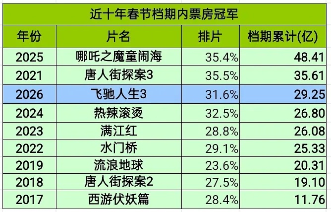 睡前在豆瓣看到最令人开心的帖子马年春节档MVP结算时刻,恭喜《飞驰人生3》不仅遥遥领先一路领跑拿下今年春节档票房冠军,而且票房绝对值跻身近十年春节档票房冠军第3名!对大盘贡献比例则是近十年Top1!以后提起2026马年春节档请说《飞驰人生3》和其他,别混在一起评