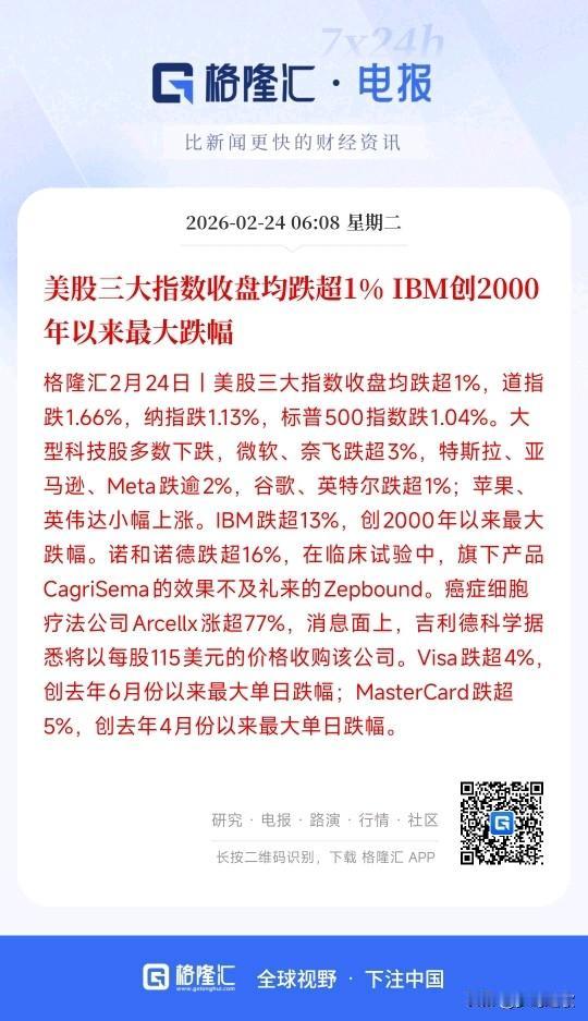 美股算是被特朗普玩坏了,关键是华尔街还助攻 昨晚,美股三大指数又是全线暴跌,道琼斯指数和纳斯达克双双下跌超过1%。原因有很多,其中最主要的原因就是特朗普威胁会提高关税到15%,还有就是华尔街对于人工智能概念股的担忧,以抛售为主。 要知道这几周,纳斯达克已经跌了4.63%,这是非常大的一个下探了,对于科技股来说很多都已经跌了20%以上,市值严重缩水。拿微软来说,市值已经跌到了3万亿美元以下,从最高点跌下来已经跌了24.77%。 现在美股的吸引力正在消失,毕竟很多国家股市在创新高,像韩国,日本等现在更有吸引力,而A股在2026年的表现也不错,正在吸金当中。