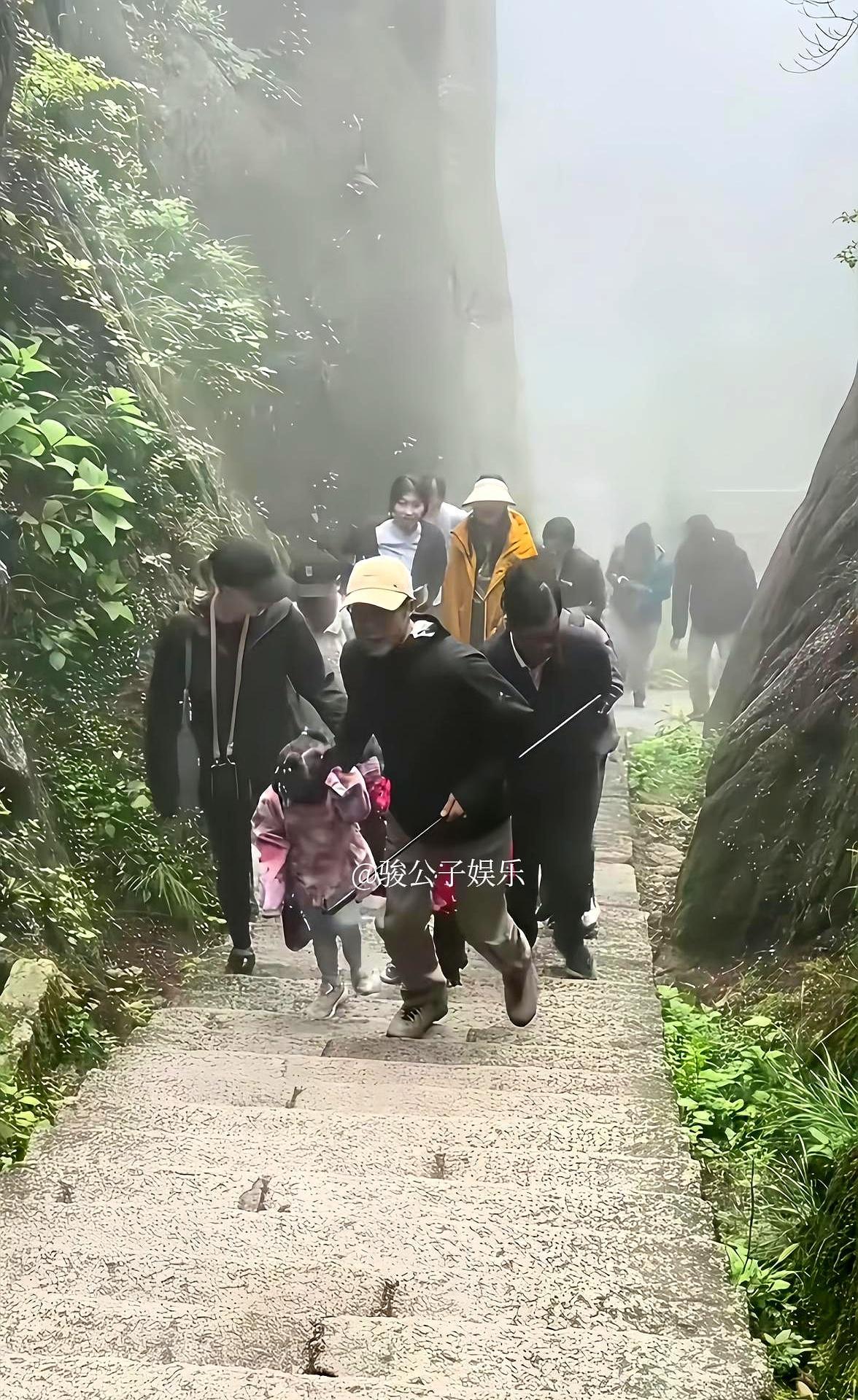 撒贝宁的基因有多霸道?看看黄山顶上他那一对龙凤胎就全明白了。 两个娃,黑头发黄皮肤,男孩五官像妈,女孩简直是撒贝宁翻版。没保姆没助理,一家四口自己爬山,孩子累了就坐路边啃黄瓜,一点不娇气。 旁边站着的媳妇李白,加拿大人,北大教育学博士,高挑白净。再看撒贝宁,晒得黢黑,笑得一脸褶子,俩人站一块,活像刚从非洲和欧洲回来的。 别看妈是外国人,俩娃一张嘴就是武汉话,最爱吃热干面。李白带娃就一条规矩:先把饭吃干净。这才是真正的养孩子,不是养个活祖宗。 都说寒门难出贵子,那这种接地气的“贵养”,你觉得能养出什么样的孩子?