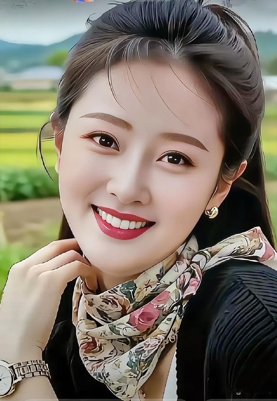 甜美笑容,花巾飘逸,自然田园风,元气满满的一天!🌸🌿
