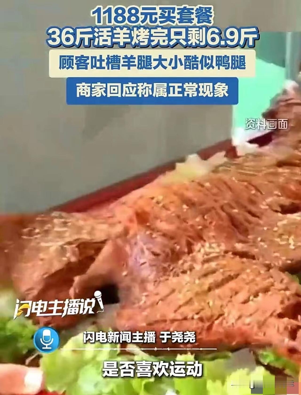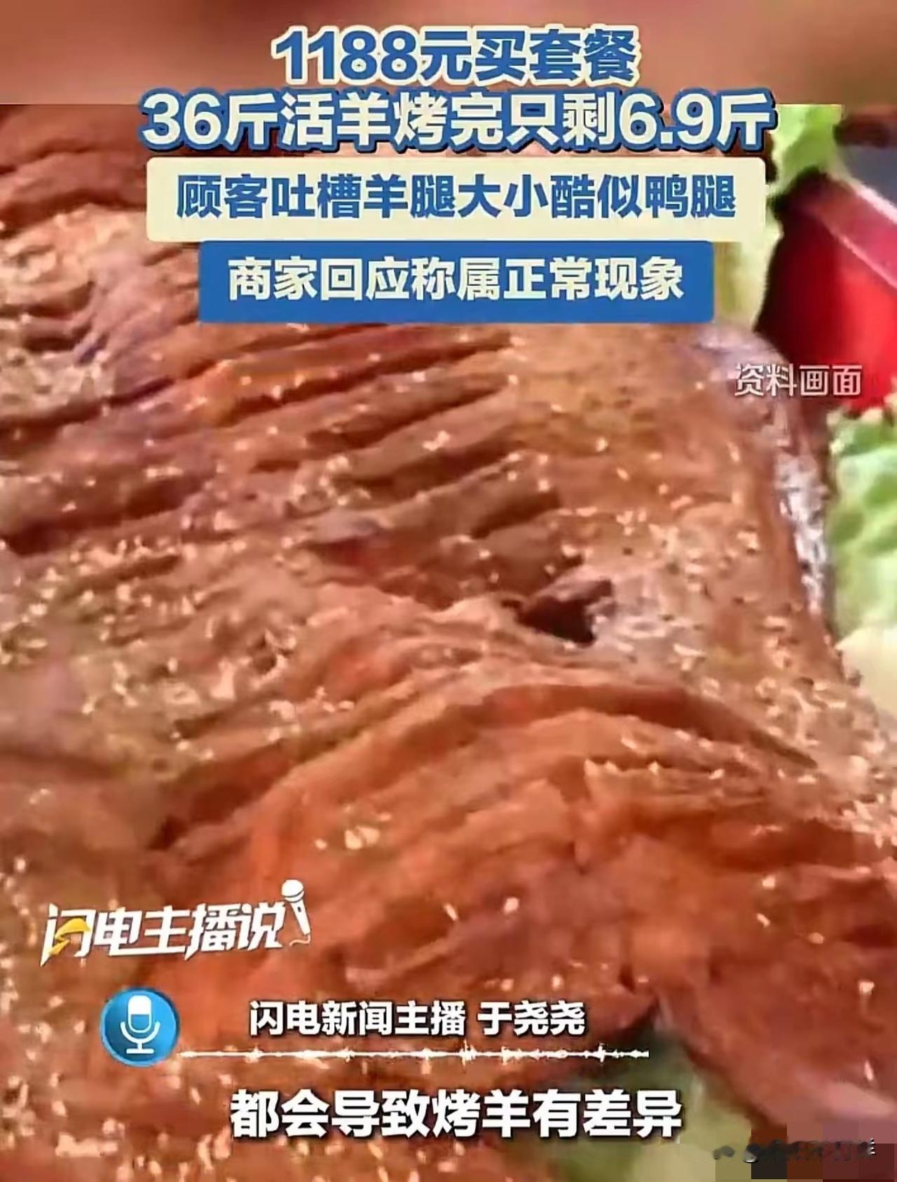 “吃相太难看了!”重庆,女子在除夕夜,带着全家人去一家烤全羊店聚餐,点了1188元的烤全羊套餐。现场称重是36斤,店家还当着王女士的面做了记号。谁知,烤全羊上桌后,女子发现不对劲了,桌上的烤全羊,个头又小又薄,肉干巴巴的,女子怀疑,店家动了手脚,偷梁换柱了。女子要求店家复称,店家说,羊肉烤完本来就会缩水,只剩四成很正常,没必要再称重。女子不能接受这个说法,双方吵了起来。女子一气之下报了警,民警赶到以后,店家被迫复称,结果,这只羊只有6.9斤。店家又说:喜欢运动的羊和不运动的羊,烤出来是不一样的。 这话一出,王女士和家人当场愣住。36斤活羊烤完只剩6.9斤,缩水率接近80%,这已经超出了正常餐饮认知。王女士事后表示,当时看到上桌的烤全羊,羊腿细得像鸭腿,完全不是之前称重时的样子,这才坚持要复称。 此事在网络发酵后,引发大量讨论。有餐饮从业者指出,活羊出肉率通常在50%至60%,36斤活羊可出净肉18至22斤,烤制后水分流失,合理熟肉重量应在10至15斤。该店6.9斤的结果,明显偏离正常范围。 商家“爱运动的羊烤出来不一样”的说法,被网友调侃为“年度最离谱借口”。不少人表示,这种解释是在回避核心问题,试图用荒诞理由掩盖可能存在的消费欺诈行为。 近年来,餐饮行业类似“称重套路”并不少见。部分商家通过模糊活重与净肉、熟肉的概念,或在称重环节做手脚,误导消费者。尤其在节假日,消费者更易因“图省事”“好面子”放松警惕,给不良商家可乘之机。 王女士的较真,引发了关于消费者维权的讨论。有律师表示,若商家存在偷梁换柱或故意隐瞒重量信息的行为,已涉嫌违反《消费者权益保护法》,消费者可要求退一赔三。 目前,当地市场监管部门已介入调查。事件进展将持续受到关注。这一案例也提醒所有餐饮从业者,诚信是经营底线,任何套路最终都会损害自身口碑。同时,也鼓励消费者在遇到不合理情况时,主动维权,共同维护市场秩序。 对于此事,你认为商家的解释合理吗?如果遇到类似情况,你会选择维权吗?欢迎在评论区留下你的看法。