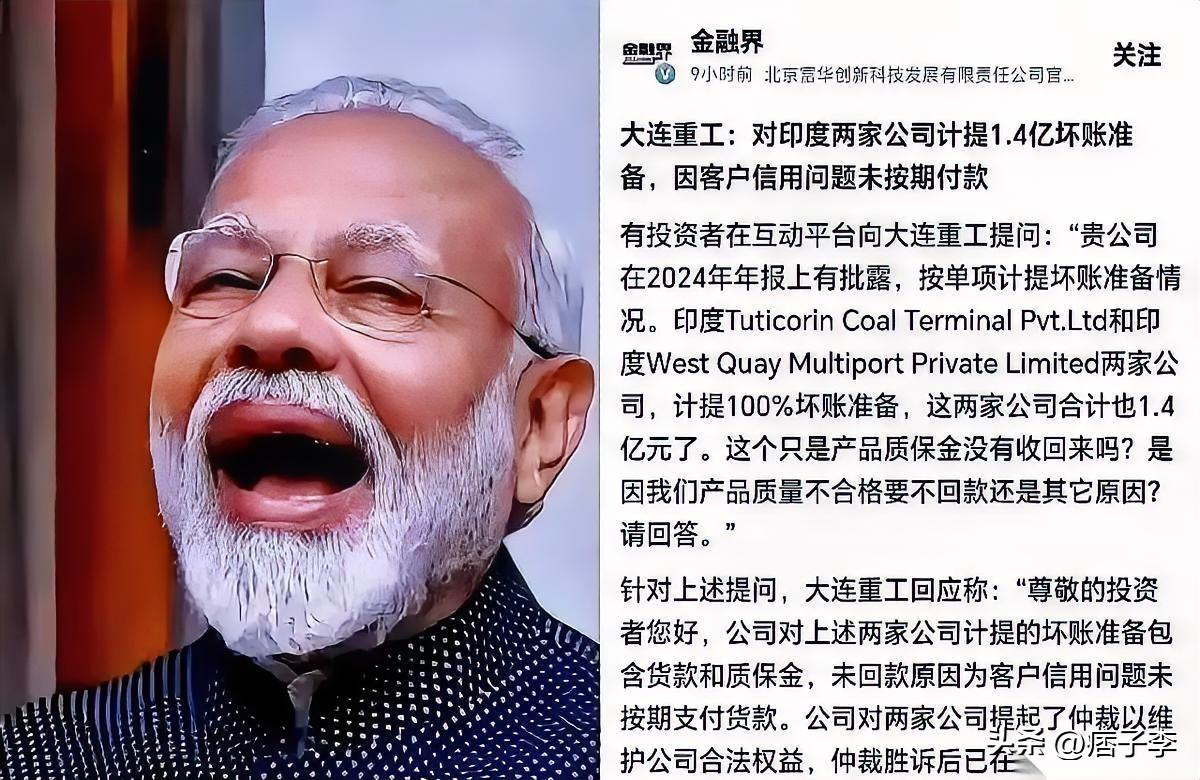 印度又开始坑中国企业了! 继小米、VIVO之后,这一次是大连重工,直接被坑了1.4个亿,给所有企业上了一堂课。 原来,印度缺少码头港口设备,放眼全球只有中国有这个能力能把港口设备运到印度,安装、调试,一条龙服务全包圆。最终设备顺利运转,按理说1.4亿人民币的尾款加质保金该结账了,结果印度老板小手一摊:哎呀,我们现在有点信用问题,这钱暂时付不了了。 开始了! 大连重工一看这架势,这又是要准备赖了?不行,必须拿起法律武器维护合法权益,结果大连重工还是没想到啊,虽然毫无悬念地胜诉了,但是印度人在赖账方面,可谓是当世顶级玩主。一秒申请破产重整,大连重工手里那张胜诉判决书,瞬间变成了一张废纸。 欲哭无泪啊! 其实,印度估计早就研究透彻了这个套路,从一开始招商引资的时候,就不可能赚他的钱,他们主打一个设备先用、尾款不给、官司让你赢、转头就破产,你毫无办法。 当初小米也是,被扣押几十亿资金,到vivo被查税务,再到无数中小外贸企业货发了却收不回款。印度这样做可不是一次两次了,“外企坟场”这个说法,可不是假的。 印度的企业文化,就是偷奸耍滑,吃拿卡要,“利用规则漏洞赖掉合法债务”,在他们看来,是“商业智慧”。 莫迪天天嚷嚷着他们市场很大,欢迎全球资本去投资,可是去了就是打水漂,谁愿意当大傻子?去印度做生意,如果十拿九稳把握,口袋里的钱一定要捂住了。 不然,你就不是去投资了,而是去“精准扶贫”。 最后再说一句:印度这信用,竟然还有学者说他们未来不可一世,要我说一万年以后吧! 印度 大连公司