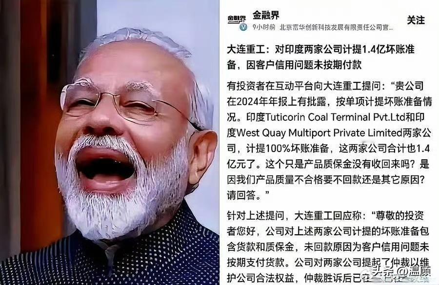 大连重工把港口设备运到印度、调试完工,尾款+质保金1.4亿却被以“信用问题”拒付。 国际仲裁胜诉又怎样?印度公司直接申请破产重整,判决书瞬间变废纸。 工资、本地银行、税款优先清偿,中国企业排在最后,回款基本无望。 这不是商业纠纷,是精准金蝉脱壳+合法赖账组合拳:设备照用,钱就是不还。 莫迪天天喊欢迎投资,现实却是: 印度赚钱印度花,一分别想带回家。 这已经不是个案,是印度部分企业的标准套路,中企出海真的要擦亮眼睛!