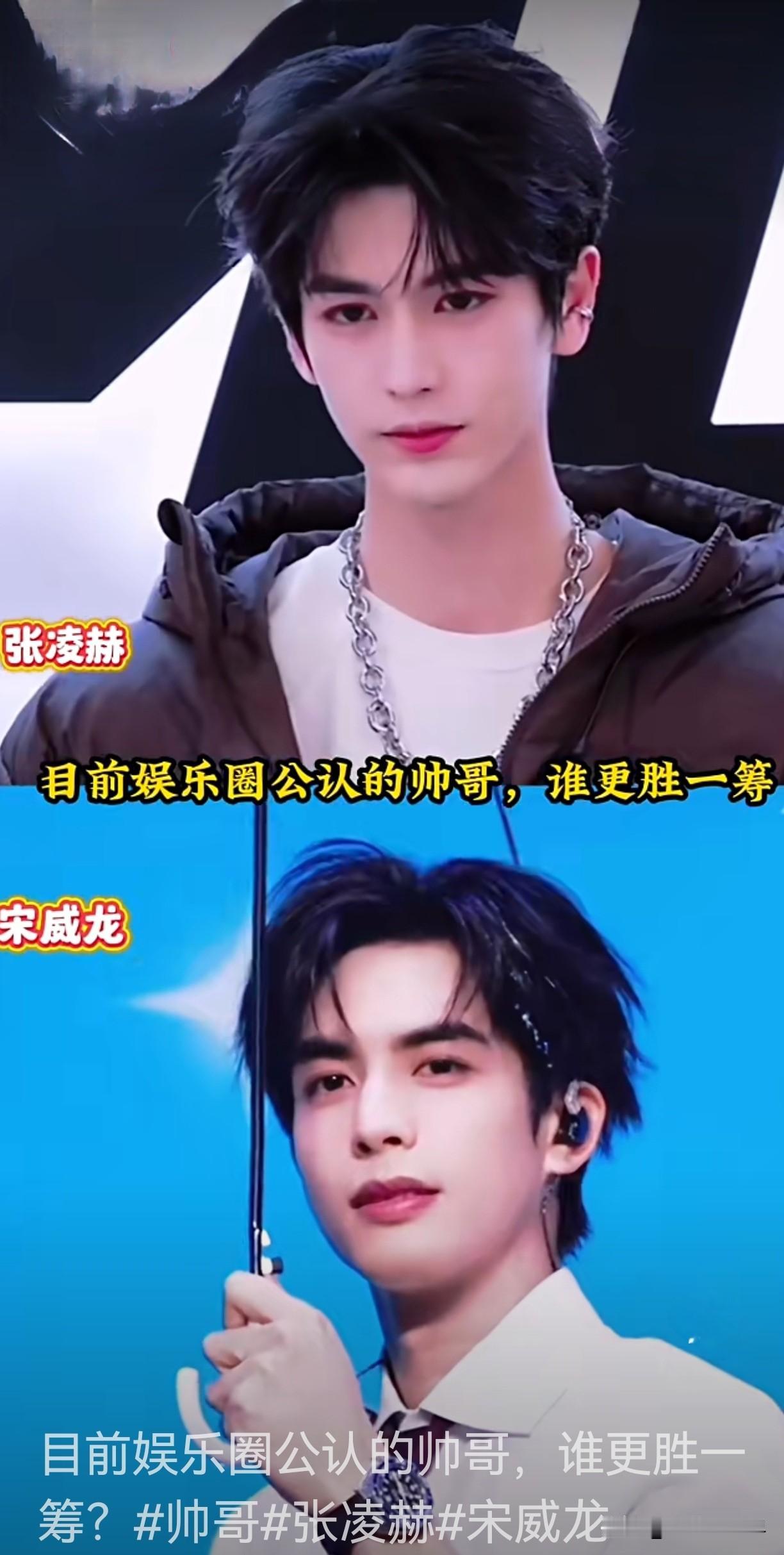 这个网友是有多喜欢张凌赫宋威龙呀!瞧,她把他们两个人放在同一个画面里,让大家来看看到底谁更帅?! 不得不说两个人都帅出天际了,不过乍一看,两个人还真有点像!但再仔细看—— 就发现张凌赫作为江南人,更清秀精致些,尤其鼻梁上那个痣,更是神来之笔。 可是宋威龙呢,作为北方人,浓眉大眼下,脸型更深邃更有立体感,显得更有男子气概。 总有人要吵吵吵,分出他们的高下第一来,但其实外貌这东西,从来是仁者见仁智者见智。 你可以喜欢张凌赫,喜欢他演的许多角色,比如谢危、宫之羽,还有《爱你》的何苏叶。 清冷、腹黑、破碎感、病娇类角色与他骨相气质高度契合,擅用喉结滚动、指尖微颤、眼神层次、气音调整等细节,克制又有张力。 尤其《宁安如梦》谢危的“疯批+脆弱”、《苍兰诀》长珩的“爱而不得破碎感”,让人刮目相看。 你也可以喜欢宋威龙,喜欢他演的元宋、凌霄,还有《骄阳似我》的林屿森。 这些都是他众多作品里的代表作,代表着不同时期交给大家的高分答卷。 185cm+立体骨相,自带清冷/破碎/少年感,现偶“天选男主”。吻戏、眼神拉丝、氛围感极强,擅长收着演,用微表情/肢体细节传情,不得不说他演的凌霄是太成功太让人心疼了。 当然啦,你也可以同时喜欢他们俩个,有他们的剧都可以追。因为他们都不是科班出身,却通过自己的努力打开一条血路。 百花齐放才是春,所以用不着再用谁更帅来问大家,小学生才做选择题。友友,你们觉得呢?