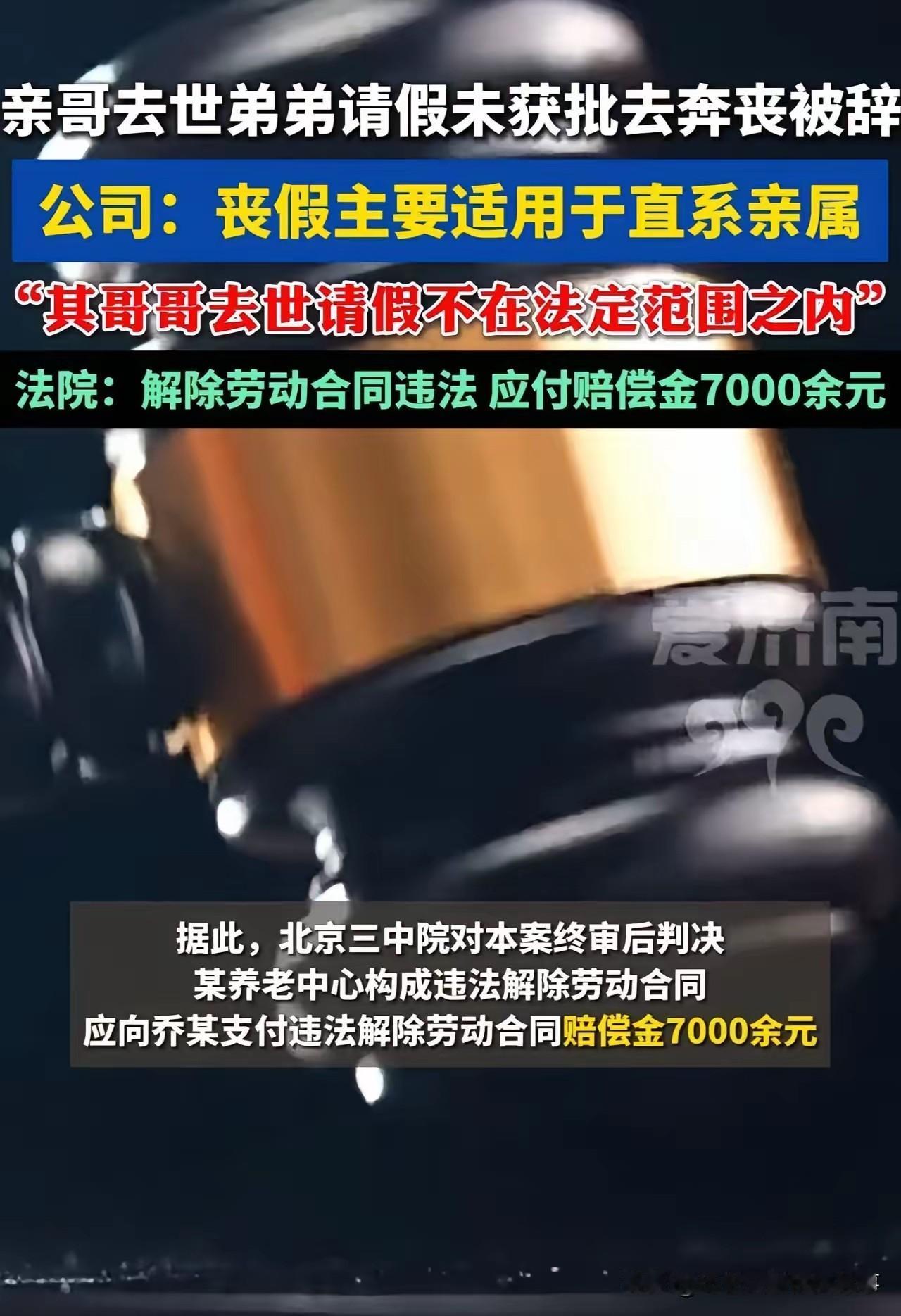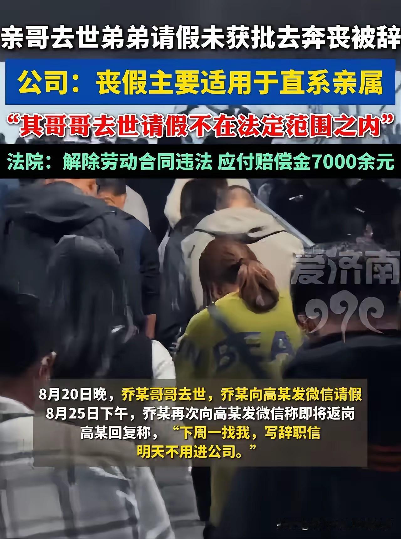 法院已经判了:公司违法开除,必须赔钱! 一、法律与人情都说清楚 1. 法定丧假:只覆盖父母、配偶、子女,亲哥确实不在法定带薪丧假范围内。 2. 但他请的是无薪事假,主动不要工资,只为奔丧,公司仍不批准,还直接开除。 3. 法院终审认定:亲哥去世奔丧是人之常情、公序良俗,公司冰冷拒批并解雇,违法解除劳动合同,判赔赔偿金。 二、网友说得最扎心 - 制度可以冰冷,人不能没有人性。 - 谁家里没亲人?谁不会遇到生离死别? - 一箱牛奶都能环游亲戚圈,亲哥走了连假都不给,太寒心。 三、给打工人的实用提醒 - 亲属去世,先申请丧假/事假,保留聊天记录、请假凭证。 - 公司以“非直系亲属”拒批并开除,直接仲裁,法院大概率支持员工。 - 事假不是必须批,但至亲丧葬这种极端人情,不批还开除,必输。 法理不外乎人情,这家公司赢了制度,输了人心。 素材来源于侵权删除