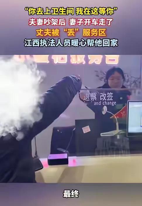太狠心!2 月 21 日,江西抚州广昌西服务区,福建一男子和妻子发生争执,妻子骗他去上厕所,说会在原地等他。男子刚下车,妻子直接带着孩子开车扬长而去,把他一个人丢在服务区,身无分文、手机钱包全在车上,无助到只能报警求助。 男子上完厕所出来,一眼扫过去,原本停在车位上的车不见了。他以为自己看错了,绕着停车场跑了两圈,连车尾灯的影子都没见着。 他摸遍了全身,连个钢镚都没有。手机、钱包、身份证全在车里,连个能联系的方式都没有。他站在寒风里,又气又懵,刚才在车上拌嘴的那些话还在耳边转,他怎么也没想到,妻子会真的把他丢在这前不着村后不着店的地方。 他就去服服务区求助民警,看到民警他才像抓住了救命稻草,红着眼眶把事情说了一遍。民警听完也哭笑不得,一边给他倒了杯热水,一边联系了车站,帮他买了回家的车票,钱还是民警先垫付的,让他回去之后再还。 其实这种事说起来,气头上的夫妻什么离谱事都干得出来,但把人丢在高速服务区,属实有点过了。先不说拌嘴的对错,单说安全这一条,就够让人捏一把汗的。高速服务区鱼龙混杂,万一他遇到点什么意外,妻子就算再后悔,也来不及了。 更让人揪心的是,妻子还带着孩子一起走了。孩子坐在车里,看着爸爸被留在原地,心里会怎么想?这种极端的处理方式,不仅解决不了矛盾,还会在孩子心里埋下阴影,让原本就紧张的夫妻关系,变得更加难以修复。 夫妻之间拌嘴是常事,可再大的火气,也不能用“抛弃”的方式发泄。这已经不是简单的闹脾气,而是对伴侣人身安全的漠视,更是对家庭责任的逃避。遇到问题,坐下来好好说,比什么都强,用这种极端的方式“赢”了架,却输了感情,实在得不偿失。 各位读者你们怎么看?欢迎在评论区讨论。