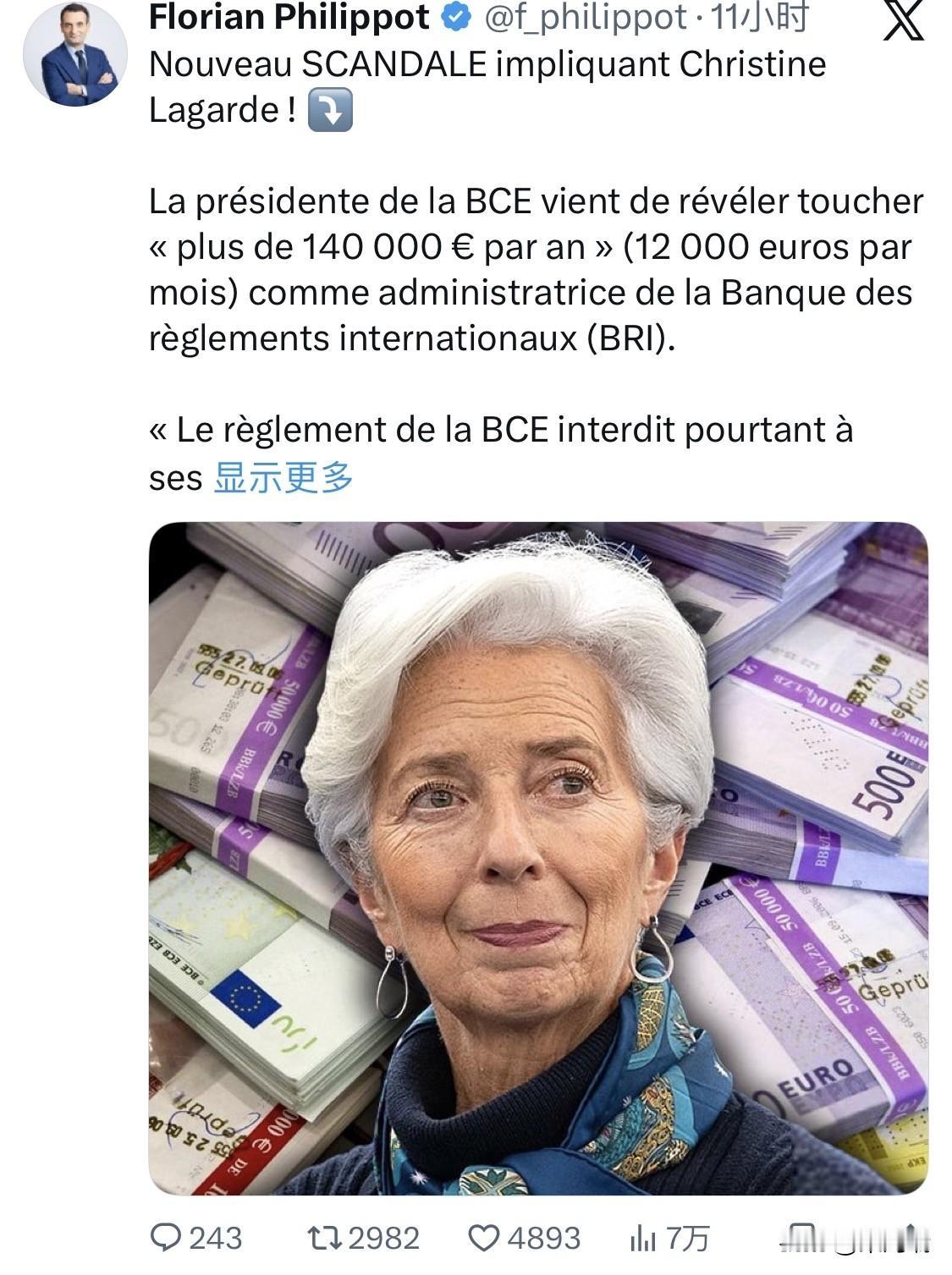 根据《金融时报》(Financial Times)2026年2月的调查及相关披露:欧洲央行行长克里斯蒂娜·拉加德(Christine Lagarde)作为国际清算银行(BIS)董事会成员,每年领取约 140,000 欧元(约 13 万瑞士法郎)的津贴。 加上其作为 ECB 行长的约 46.6 万欧元基本工资及约 13.5 万欧元的各项福利,拉加德的年度总薪酬预计达到约 74.1 万欧元,这使她成为欧盟薪酬最高的官员之一。 欧洲央行的《工作人员规则》明确规定,员工在履行职责时禁止接受第三方的报酬,任何此类款项应上缴 ECB。即使是陪同拉加德参加 BIS 会议的随行员工,也被禁止领取 BIS 提供的任何津贴。 官方辩护: 欧洲央行回应称,拉加德不属于普通“工作人员”,因此不受上述员工规则约束,而是受专门针对高层官员的《行为准则》管辖。ECB 还指出,领取 BIS 津贴是其前任行长(如德拉吉和特里谢)的一贯做法。 对比其他央行行长: 相比之下,美联储主席鲍威尔(Jay Powell)和英格兰银行行长贝利(Andrew Bailey)虽然也是 BIS 董事会成员,但根据各自国家的法律或政策,他们拒绝领取这笔额外报酬。 目前,ECB 内部员工在内部论坛上对这种“双重标准”表达了愤怒,认为这损害了机构的公信力。
