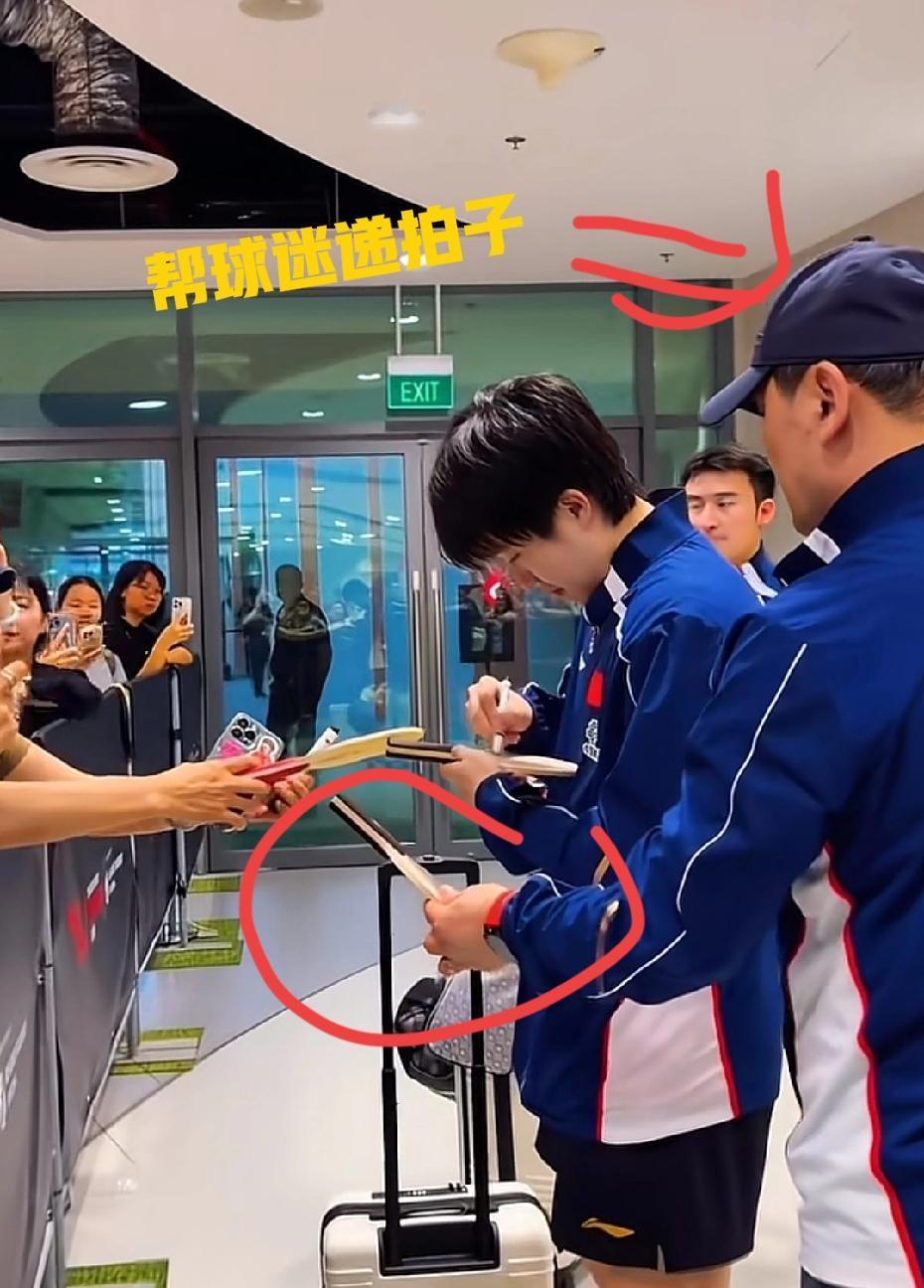 楚钦本身就是很好的人啊!感恩楚钦身边一直有这么好的人陪伴,下训回酒店,楚钦停下来为球迷签名,看到他停下来,走到门口的体能“作弊叔”立刻返回来,站在楚钦身旁,还帮着他拿了一个较远一些的球迷的拍子来签名;牛牛也是,发现楚钦停下来,自己也是立刻转身,守护在他旁边! 每一块金牌后面都是整个团队的付出,国球这块,我们算是配置相当高了!那非洲一哥阿鲁纳,据说每次比赛都是自己来,没有教练、陪练,啥都没有! 辛苦头头了,不签名还要被说,有人骂他说他架子大,不给小孩子签名,其实不要道德绑架他们,签名不签名签名由他自己决定,他心里想着比赛,赶着去比赛,不想签就不签!大家都好好的排队,不挤不吵的时候,也许他就愿意签了呢!毕竟那么多人,他是签不过来的,不可能每次都签,也不可能满足所有人! 祝福楚钦永远这么意气风发!少年心志是不可再生之物,但是希望楚钦一直这么阳光向上,新加坡大满贯加油,比赛顺利[比心] 晒图笔记大赛 乒乓球