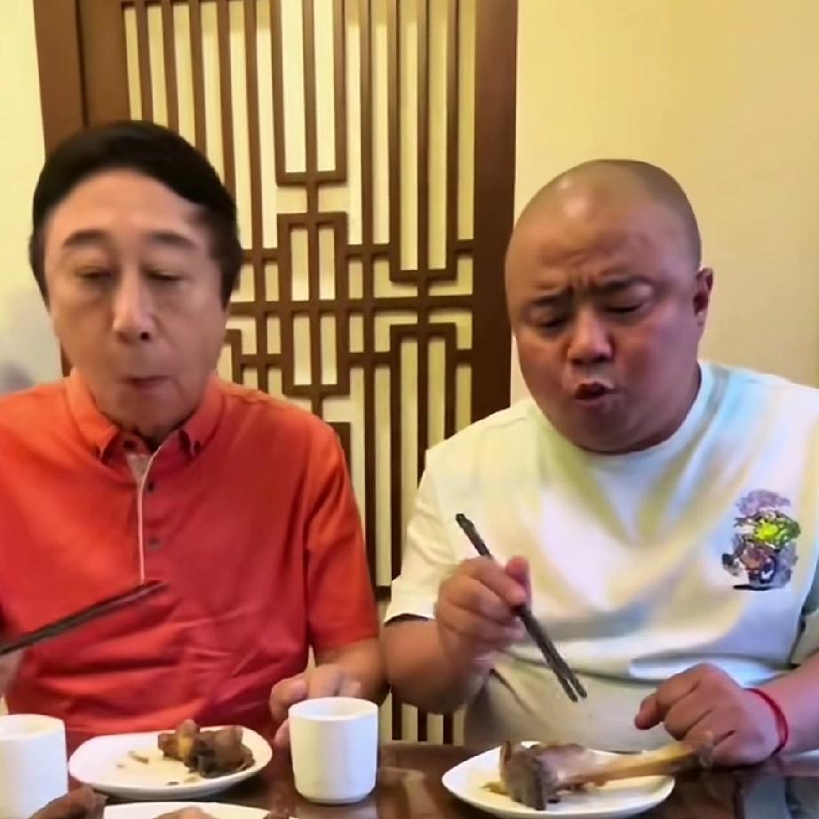 冯巩和徒弟曹随风又出段子了,内容是这样的: 冯:一定要厉行节约之风,吃不完的东西一定要打包。 曹:师傅,这次吃剩下的骨头我要拿走,为了这些骨头,我前几天买了条狗。 冯:我为了省鞋底,去年买了个电动车。 曹:我为了省煤气,从来不做饭,一直点外卖。 冯:我为了省洗衣机,我去年娶了个媳妇。 曹:还是师傅你厉害,你让师母洗衣服? 冯:我让她看着我用搓板洗衣服。 曹:还是师傅你厉害! 冯巩这个人挺机灵的,看到那个闫学晶失势了,再也不和她拍段子了,不过和徒弟拍的也不错。