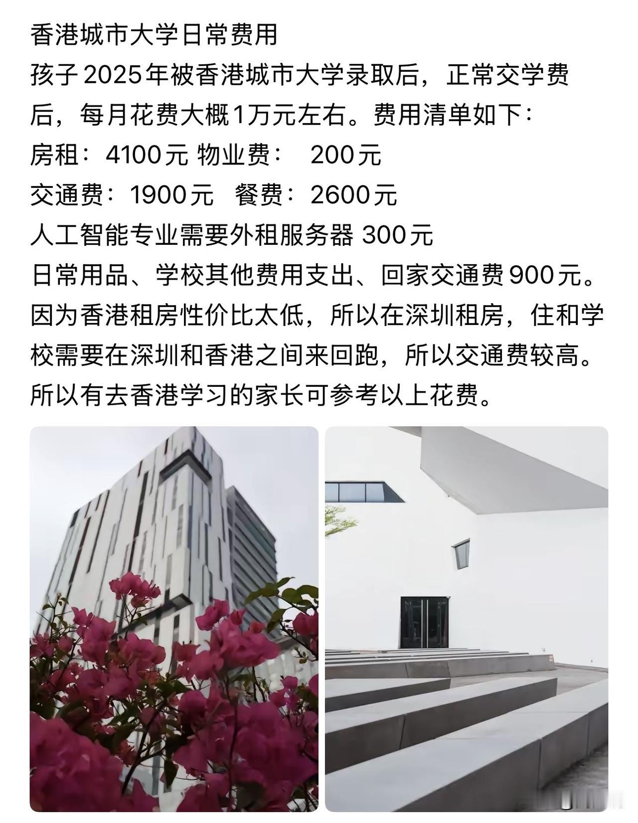 想让孩子去香港留学的家长,可以好好看看。这是一位家长送孩子到香港城市大学的真实花销,每个月花费大概在一万左右,而大头还是在于住房,房租和物业费每个月就高达4300元。所以,留学前一定要算好经济账,不要盲目跟风,才能让求学之路走得更稳、更安心。#寻美三湘# #周少说教育#