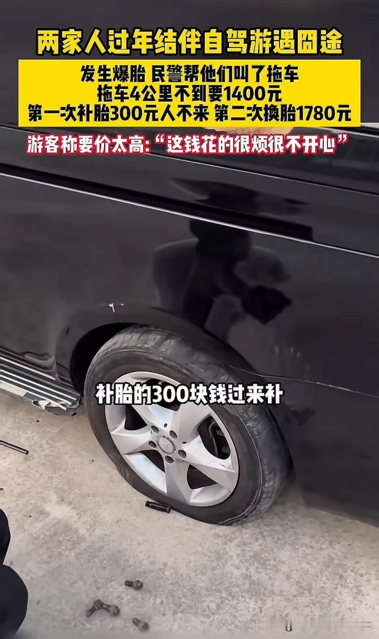 这事儿太离谱,官方已介入严查,涉事方大概率要被重罚+退款。 一、事件还原(2026-02-21,大理大丽高速) - 广东游客陈先生自驾爆胎,交警帮忙叫拖车,拖3.8公里到收费站,要1500,实付1400。 - 拖车司机推荐补胎,收300定金后失联。 - 再找维修,只换不补,报价1780(同规格轮胎市场价仅300+)。 - 一趟下来花3180元,游客崩溃:“别来大理自驾游”。 二、价格有多黑?(一眼看懂) - 拖车:云南指导价10公里内起步300元,4公里合理价≤300,收1400,是正常价4.7倍。 - 换胎:市场价300+,报1780,翻近6倍。 - 高速救援新规:全国23省50公里内免费,大理却收天价。 三、官方&舆情反应 - 大理市监局、交通局已立案调查,要求退款+处罚。 - 全网刷屏,话题阅读超5.7亿,大理旅游口碑短期重创。 - 网友怒评:交警介绍的都敢宰,太黑了。 四、自驾避坑指南(立刻能用) 1. 高速故障优先打12122/96122官方救援,别信现场“热心推荐”。 2. 要求明码标价、先报价再服务,不接受口头天价。 3. 保留付款记录、聊天/录音、里程截图,事后投诉/维权。 4. 遇宰客直接打12315/12345,旅游城市对宰客零容忍。 五、一句话总结 制度有漏洞,商家没底线,游客太无辜。 大理要挽回口碑,必须严打+退款+公开处理。大理事故 爆胎真相 高速烂胎 高速车辆赔偿 素材来源于网络
