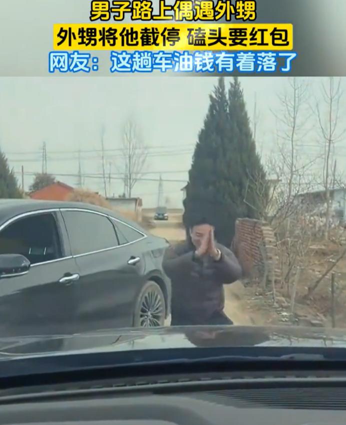 河南,男子过年回村,开车时突然在路上被人截停,刚想要生气,结果却发现截停他的不是别人,而是他的外甥,外甥也是直接来到车前磕三个头,然后索要红包。网友:下次记住了,磕一个头! 2026年春节,河南一个八竿子打不着的小村子,上演了一出堪称年度最野的"公路劫案"。 没有警笛,没有骂街,连一丁点火药味都闻不着。就两张红票子,外加一车人笑到快背过气。 那天下午,村道窄得跟羊肠子似的,两边停满了各家各户的车。一位大哥攥着方向盘,跟考科目二一样,一点一点往前蹭。 开过这种路的都懂,心态分分钟原地爆炸。 就在这节骨眼上,前面突然横过来一辆车。留意,并非顺势而停,而是横向拦截,以决然之势将道路封堵得密不透风,毫无通途之隙。 搁平时,或者换个不认识的人,这妥妥就是路怒症发作现场。大哥当时也是这么想的,眉头一皱,车窗一摇,那句"你咋开车的"已经顶到嗓子眼了。 结果窗户刚落下来,剧情直接来了个一百八十度大转弯。 大哥定睛一看,从那辆拦路车里钻出来的人,他认识啊。什么路怒,什么焦躁,瞬间跟泄了气的皮球似的,全没了。 那是他亲外甥。 这小子明显是蓄谋已久。压根不给舅舅反应的机会,也没打算在大马路上客套寒暄。他三步并作两步走到车头前,也不嫌地上脏,膝盖一弯,"扑通"一声就跪下了。 紧接着就是三个结结实实的响头。 动作标准,力度到位,额头几乎怼到地面上。这一套行云流水的操作做完,他压根没起身,直接凑到驾驶室窗边。 手往窗框上一搭,那张脸几乎贴到舅舅鼻子尖上,满脸就写着四个大字:给钱放行。 这一幕直接把副驾驶上的舅妈给整破防了。 本来挺紧张的路况,硬生生变成了一出家庭喜剧。舅妈笑得浑身直抖,话是肯定说不出来了,只能一边捂着嘴,一边手忙脚乱地翻包。 也顾不上数钱了,摸到两张红色的百元大钞,顺着车窗就递了出去。 这是一场效率拉满的"勒索"。 外甥接过钱,也不在那假模假式地推让,动作麻利地往兜里一揣,扯着嗓子喊了句"舅舅舅妈过年好",转身就回自己车上了。 那辆横着的"路障"随即挪开,整场戏从头到尾,满打满算也就一两分钟。 此段视频上传网络后,评论区的景象着实令人称奇。众人观点竟出奇地一致,仿若心有灵犀,评论的画风整齐划一,蔚为大观。有人精准地算了笔账:"三个头换两百块,这买卖稳赚不亏。" 更有看热闹不嫌事大的网友直接给出战术指导:"下次记住了,磕一个头就行,意思到了钱也就到了,还能省两个头的力气。" 大伙都在笑,是因为这场景太稀缺了。 我们现在的春节是啥样? 说实话,大多数时候,回村就是一场大型走过场。见面递根烟,吃饭玩手机,牌桌上虽然热闹,但总觉得那是另一种形式的社交应酬。 亲戚之间的关系,正在变得越来越"礼貌"。 这种"礼貌"背后,藏着的其实是疏离。你不敢去拦表哥的车,因为你怕他真翻脸。你也不会给远房的叔叔磕头,因为你会觉得尴尬得要命。 但在这个河南的村道上,我们看到了另一种活法。 外甥敢横车拦路,甚至敢在大庭广众之下耍赖皮要红包,是因为他心里有底。他笃定舅舅不会翻脸,他知道这种"冒犯"会被解读成亲昵。 这是一种极高的信任成本。 反过来看舅舅和舅妈。被人堵了路,不但没发火,反而笑得前仰后合,掏钱掏得心甘情愿。这不光是长辈的大度,更是打心眼里的疼爱。 只有把对方真当自家孩子,才会纵容这种近乎胡闹的玩笑。 有人感叹,能见到磕头拜年的地方不多了。这话听着有点酸,但确实是大实话。 那些正在消失的年味,其实不是鞭炮声变小了,也不是饺子不香了,而是人跟人之间那股子热乎劲儿淡了。 我们太习惯在过年的时候保持体面,却忘了过年的本质其实就是一种"允许"。允许稍微出格,允许大声喧哗,允许像个孩子一样去讨要一份祝福。 这段视频之所以能火,大概是因为它像一面镜子,照出了我们内心深处对这种"野蛮"亲情的渴望。 两百块钱不多,但这三个头磕下去的瞬间,那个充满烟火气的、生猛热烈的中国年,好像又回来了一瞬。 下次如果有人在村口堵你的车,别急着按喇叭。 说不定,那也是一份等着你去签收的热闹。