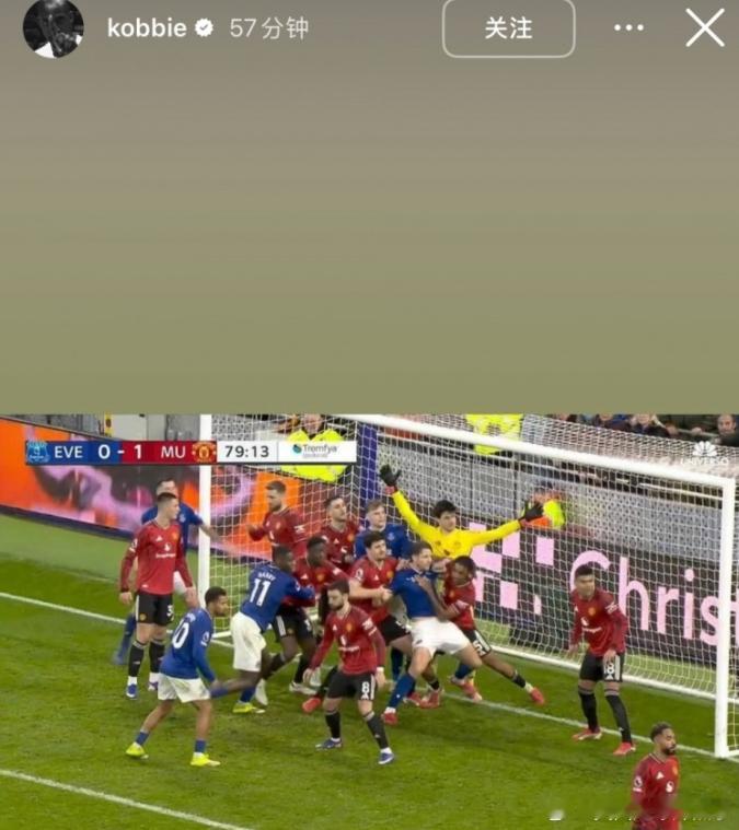 梅努晒图调侃埃弗顿的角球战术 埃弗顿0比1曼联