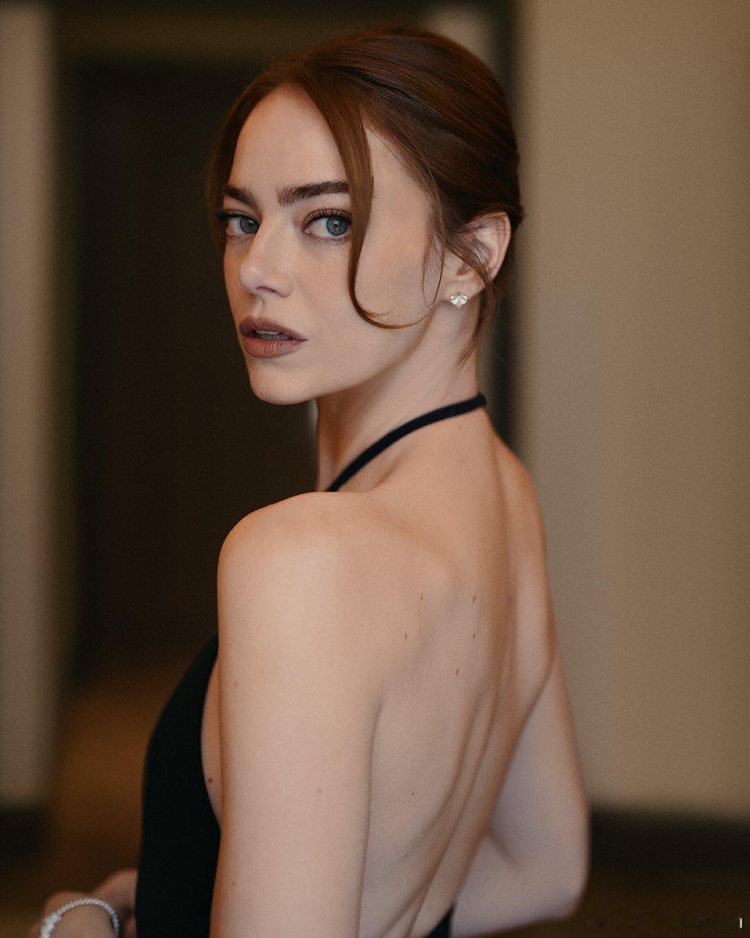 Louis vuitton品牌大使Emma stone艾玛斯通身着其黑色裙装出席英国电影学院奖,为其拍摄的官方宣传照