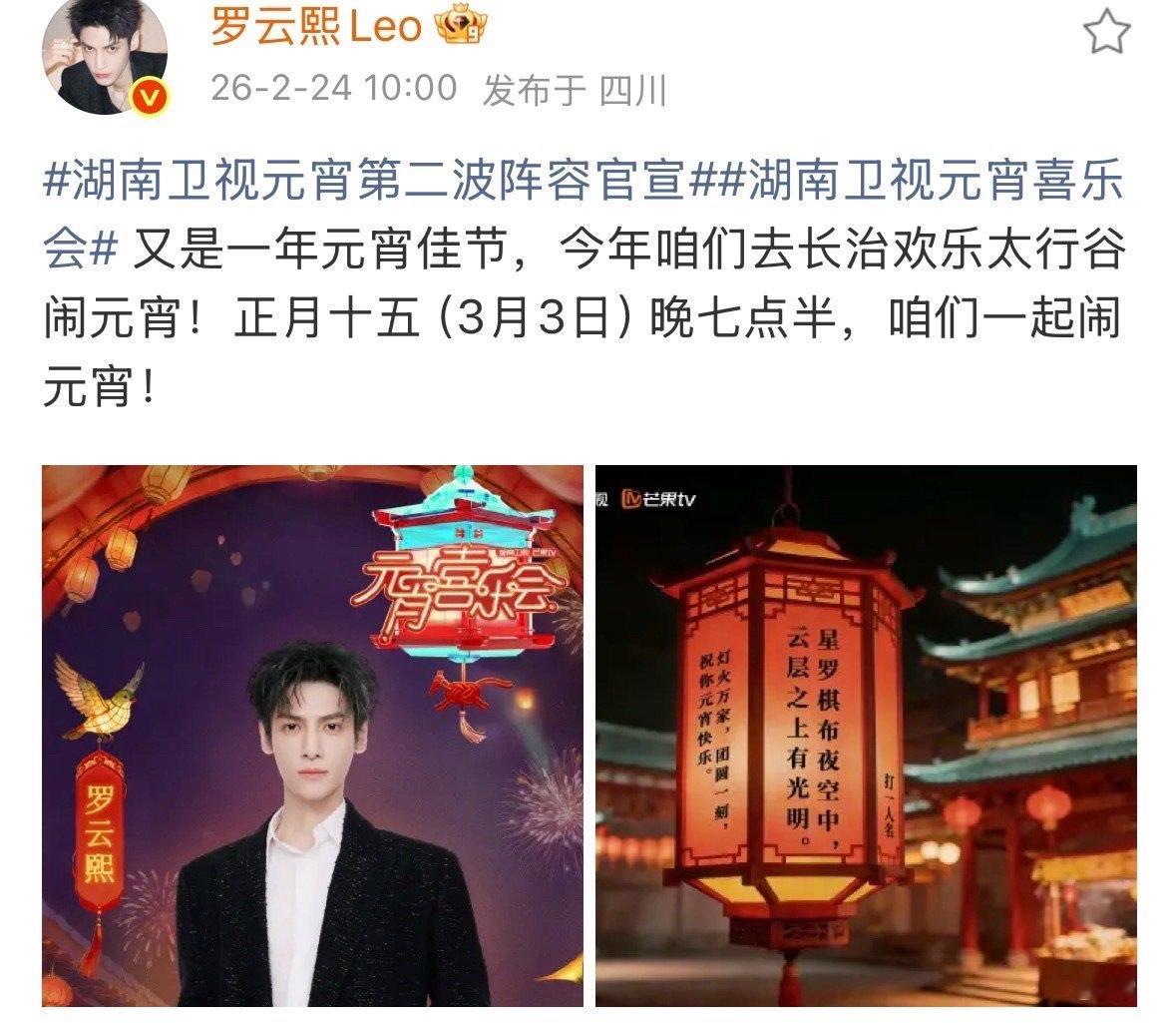 罗云熙罗云熙湖南卫视元宵喜乐会官宣罗云熙古装氛围绝配湖南元宵罗云熙官宣加盟元宵喜