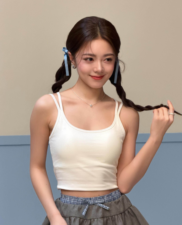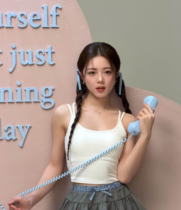 赵今麦最新照片 双麻花辫和浅蓝丝带,把少女感拉满 白吊带+灰半裙,是春天里最舒服的松弛感