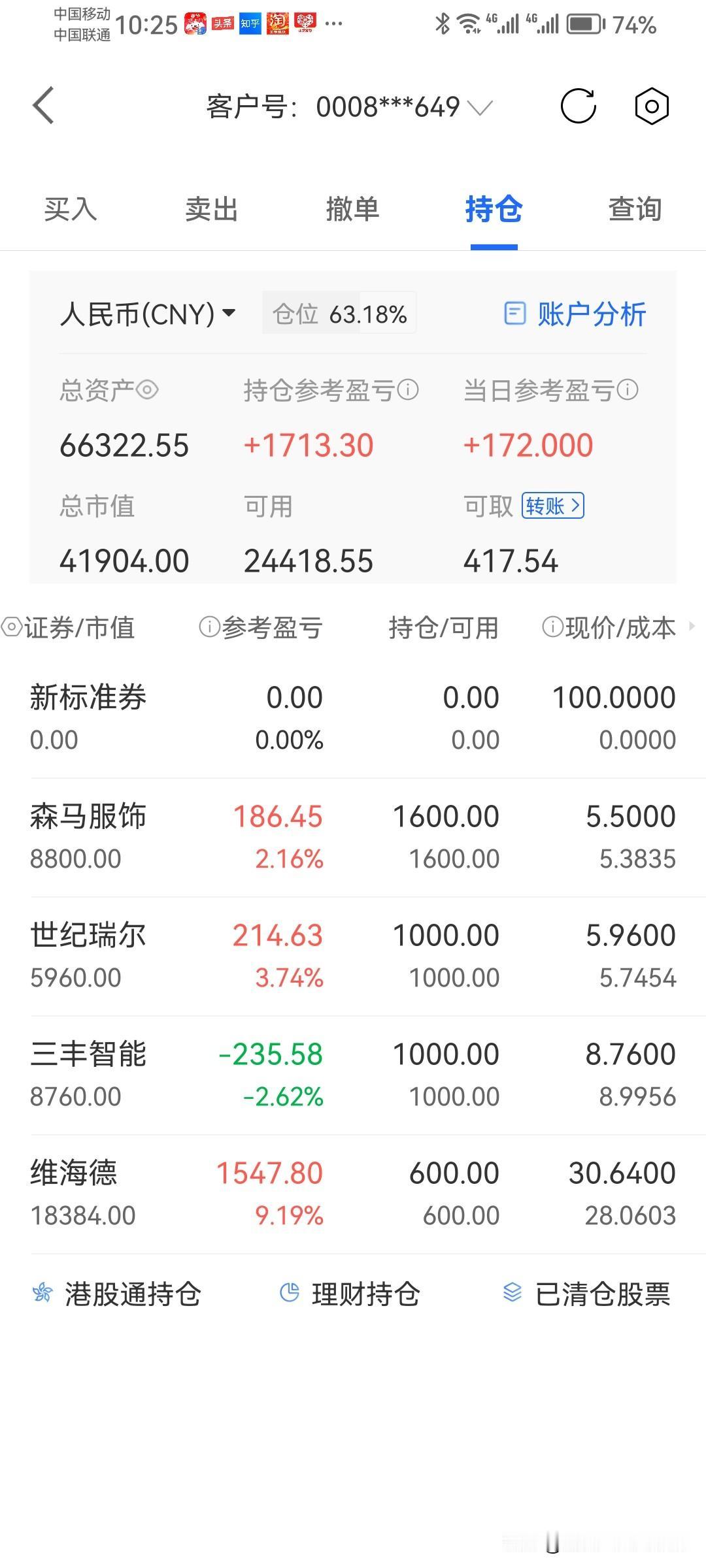 今天股市开门红,大盘涨那么多,我的票不涨,我本钱小,本来只买一只票的,看着这只票也好,那只票也好,又买多了。 想等个大阳出货,它跑得比蚂蚁还慢,卖了怕他大涨,不卖怕他大跌被套。赚点青菜钱,操着白粉心。 每次卖了就大涨,拿着就大跌,买了就被套,看中而没下手的票都涨疯了,为什么?请高手指点,不胜感激!