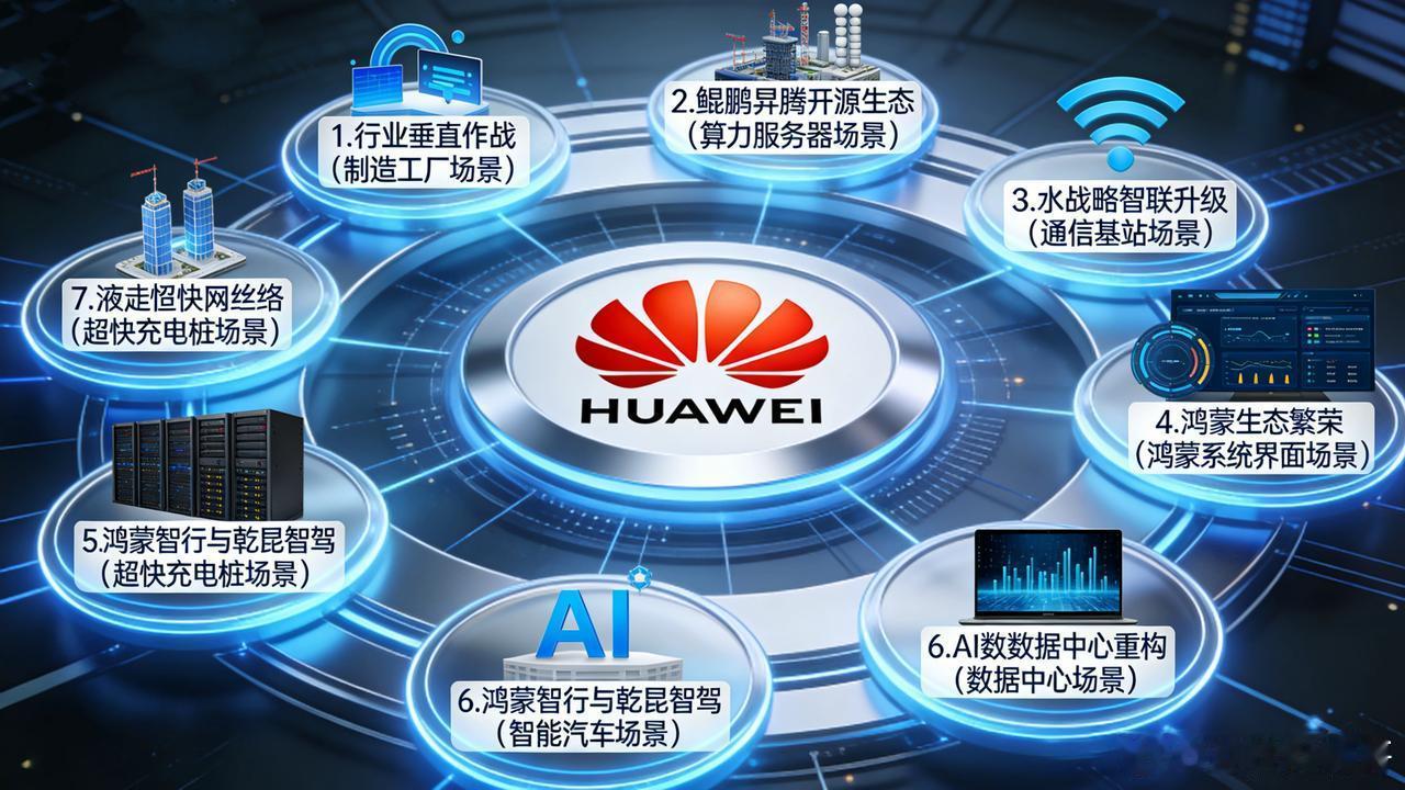 ✅主战场1:强化行业垂直作战发挥技术整合优势,深耕制造、矿山、钢铁、医疗等千行百业,深度赋能各行业智能化转型,做产业升级的核心伙伴。✅主战场2:构建鲲鹏昇腾开源生态打造普惠AI算力底座,推进超节点与集群技术普及,让算力像水电一样触手可及,筑牢人工智能算力根基。✅主战场3:深化“水战略”,从联接到智联将AI融入通信网络,实现5G-A+光纤深度融合,激发管道流量,构筑智能时代的信息大动脉。✅主战场4:全面繁荣鸿蒙生态以鸿蒙NEXT为核心,推动系统从“可用”到“好用”升级,为终端与万物互联提供原生AI体验,打通多场景跨设备无缝流转。✅主战场5:鸿蒙智行+乾昆智驾规模化不造车只定义智能汽车,推动高阶智驾规模化落地,解锁城区领航辅助等功能,打造安全舒适的智能出行体验。✅主战场6:重构AI数据中心以液冷、高能效为核心抓手,提升算力利用效率,让每瓦特产出更多Tokens,抢占AI算力基建制高点。✅主战场7:液冷超快充网络覆盖布局全国液冷超快充网络,实现“有路的地方就有高质量充电”,补齐新能源出行最后一块短板,缓解充电焦虑。