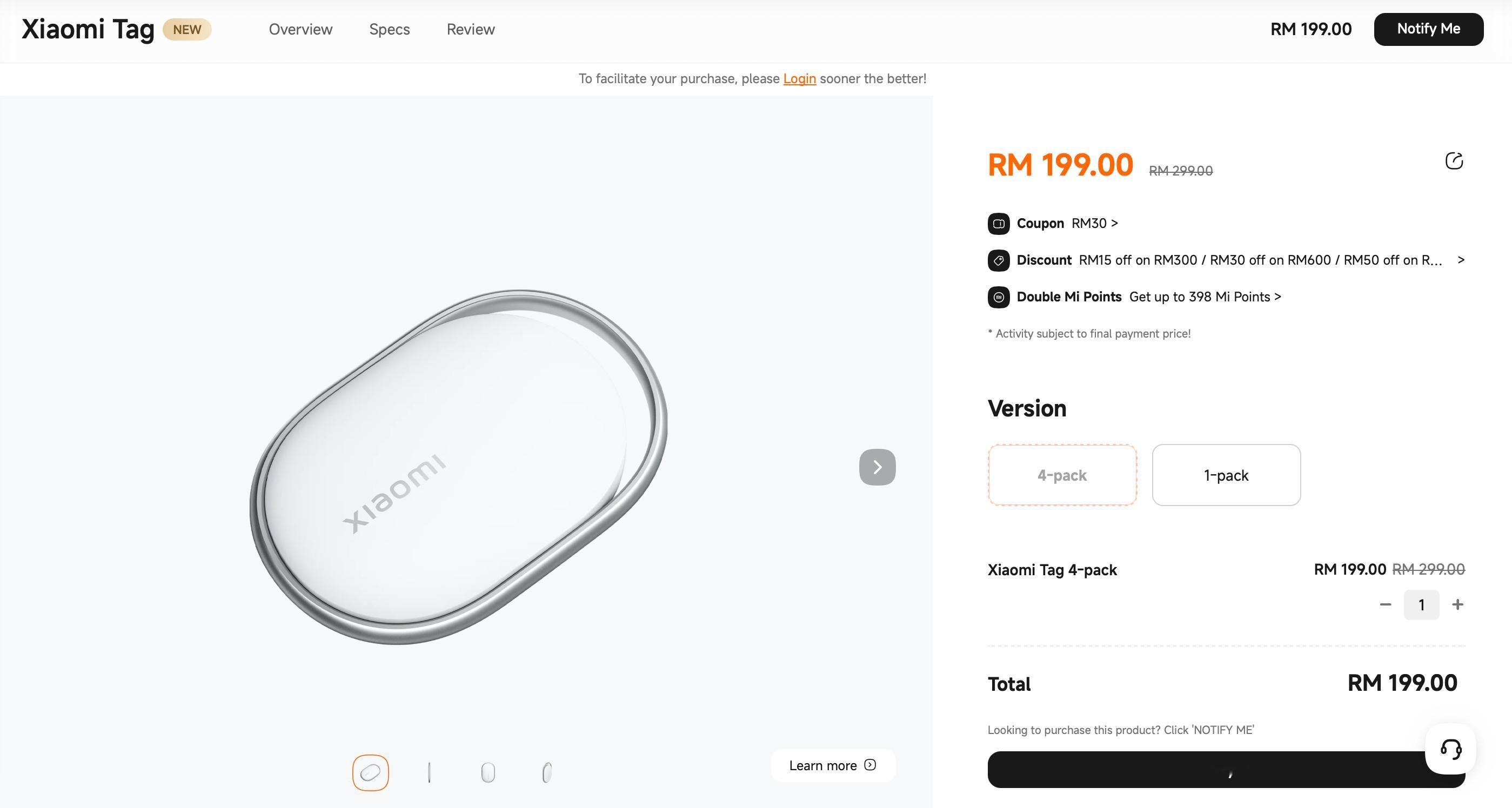 小米在马来西亚官网上架了一款设备追踪器——小米 Tag,不清楚以后会不会在国内开售,这外观大家觉得咋样?如果上架你们会买吗?