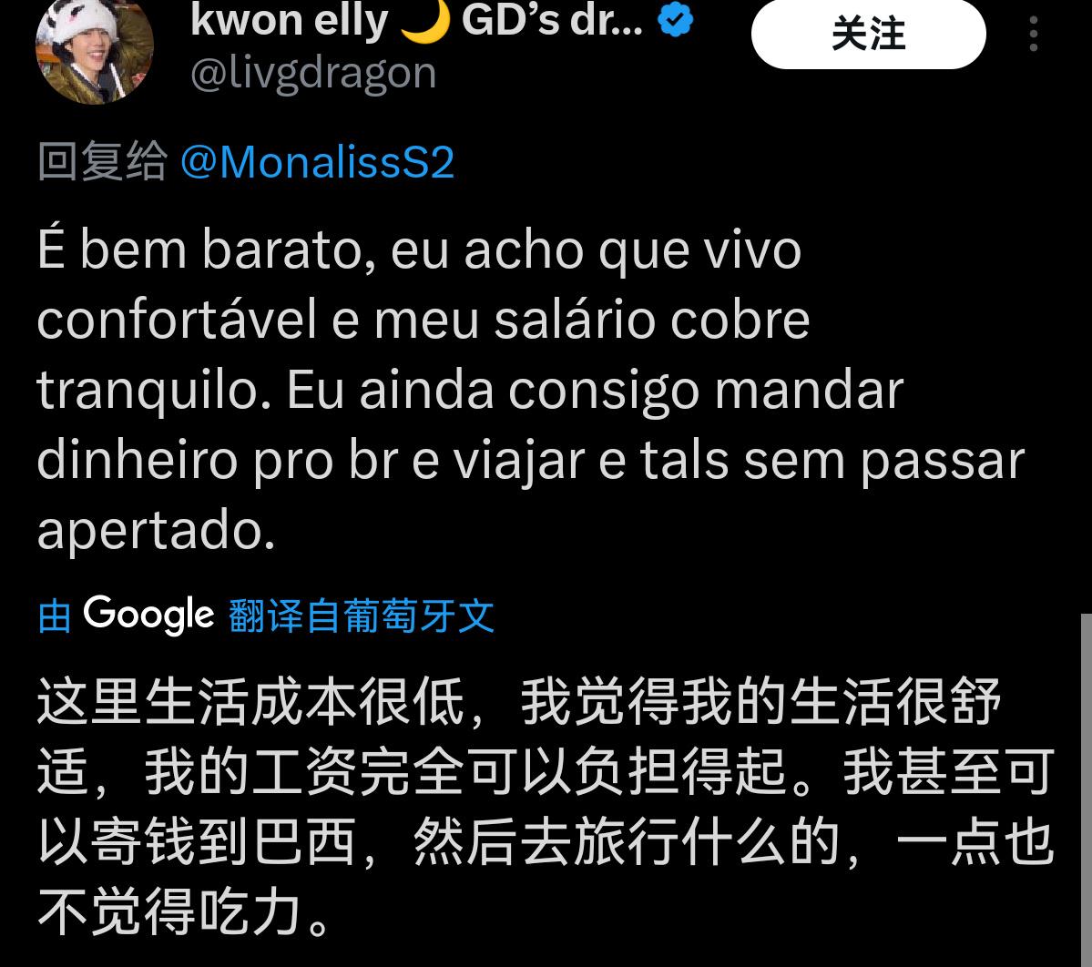 近日,一个在中国工作的巴西姑娘,她分享自己在中国的花销,她不自己做饭,基本靠外卖,每月需2000雷亚尔,150用于健身,2000用于娱乐,交通费40,手机套餐55,保险和房租是公司支付,每月总计4245巴西雷亚尔(约5660),占了她工资三分之一! 这是基于她在大城市生活,不常外出、不怎么喝酒、不做饭的情况下的一个花费,她工资大部分花费都用于演唱会、旅游、品牌和GD的联名合作产品,但她经常看到有人说每月平均要开销1.2万,她觉得有点太高了… 她每月不用付车贷、房贷或房租、又没有子女养育,每月一两万的工资,确实可以活的挺自在的…
