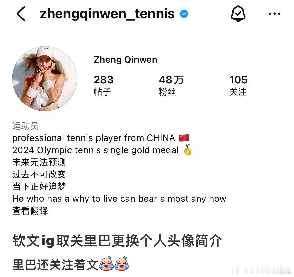 郑钦文取关里巴教练 热搜了,具体情况等待当事人说法了