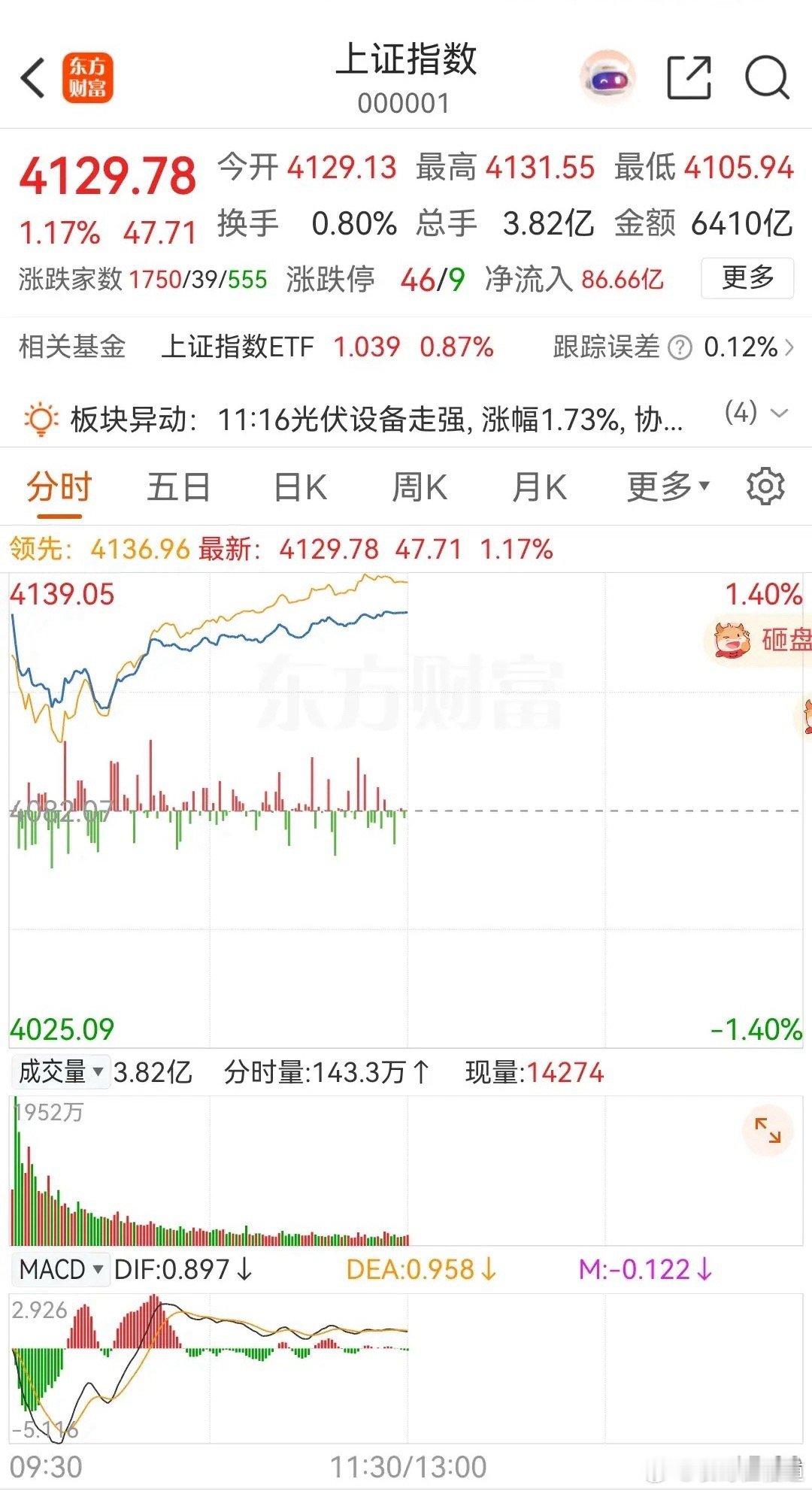 A股大涨,H股大跌,今天的这种走势太分裂了,真怕H股把A股带崩!今天是大年初八,马年A股首个交易日,直接高开开门红,虽然盘中有所回落,但是没多久就又拉了起来,午间收盘时沪指上涨了1.17% ,而港股恒生指数则是高开低走,大跌了约2.0%。另外,A50期指目前是下跌了0.8%,而恒生指数期货大跌近2.0%。贵金属板块则是大涨,午间收盘时的涨幅为6.89% 。对于大盘下午的走势,上午盘中说过,大盘下午还会继续反弹,尾盘时会有回压。