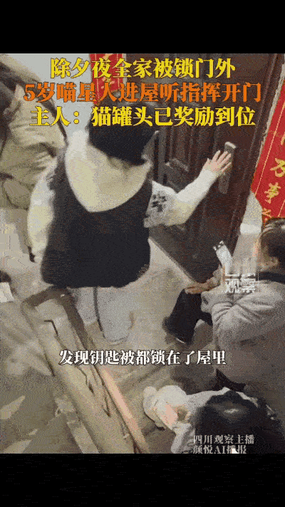 立大功了!除夕被锁门外,全家急疯!猫咪5分钟开门救场。 湖北宜昌一女子,除夕全家出门吃年夜饭,走到半路发现钥匙忘在家里。͏ 大过年的,开锁师傅全放假,物业也没备用钥匙,一家人急得团团转,眼看年夜饭就要泡汤。 就在绝望时刻,家里五岁的猫咪遛弯回家,女子灵机一动:这猫平时总看家人开门,说不定真会! 家里留了扇小窗,刚好够猫咪钻进去。众人把猫咪送进屋,隔着门指挥。 猫咪纵身一跃,用身体重量压下门把手,只听“咔哒”一声,门真开了!全程不到5分钟。 一家人顺利进屋,猫咪当晚收获罐头“年终奖”,直接封神。 网友笑称:年度最佳员工,比开锁师傅还靠谱! 温馨提醒:出门前一定检查钥匙,不是谁家都有只湖北宜昌“开锁猫”~