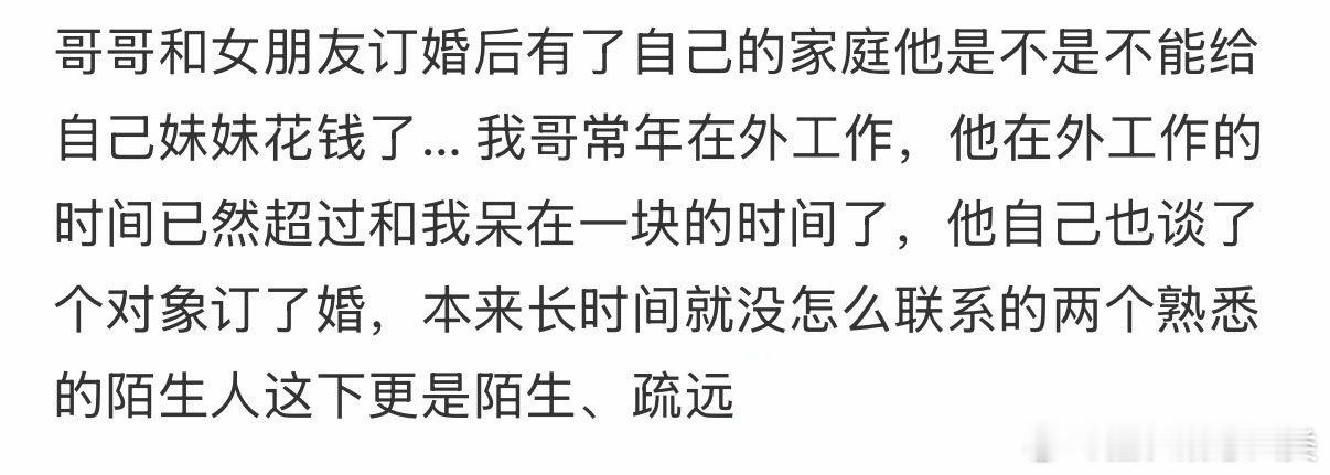 哥哥与女友订婚后,成立了自己的家庭。他是否还能为妹妹花钱?