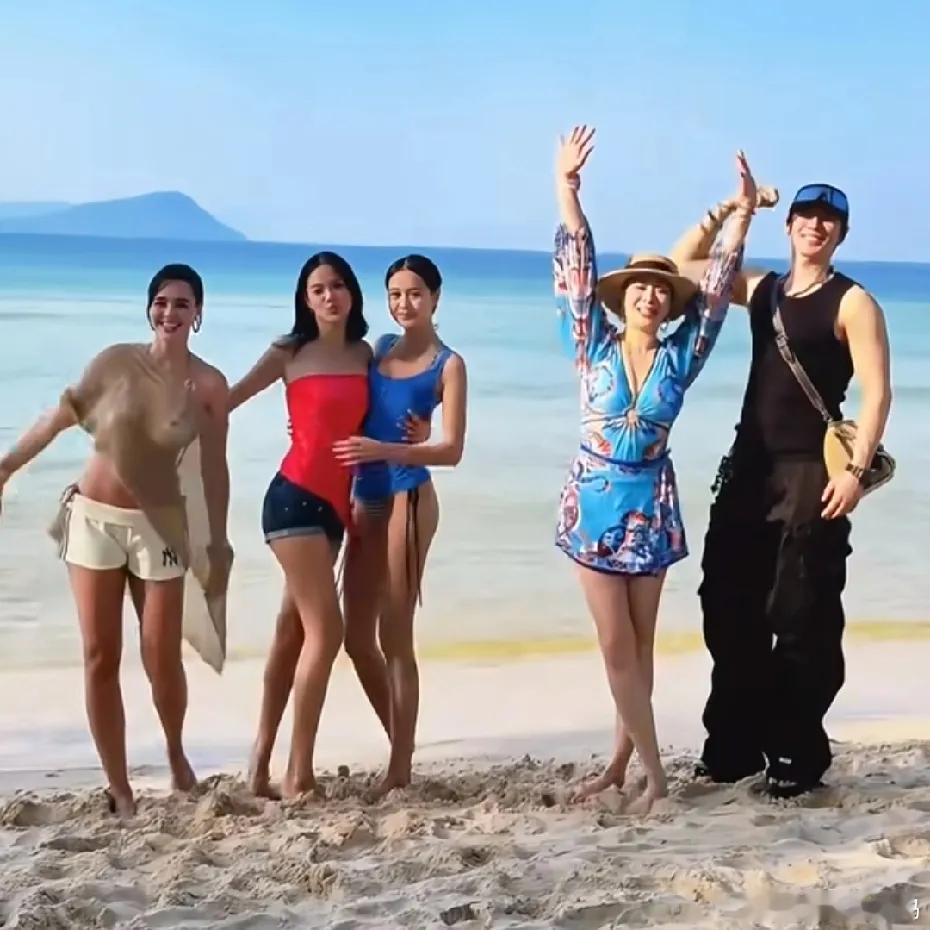 钟丽缇晒全家海边照片,三个女儿身材太好了!Cayla和Jaden的身材居然比大姐还要好,可能是因为不同的爸爸,姐妹们身形不一样,大姐比较性感丰满,老二和老三细高个儿,比较纤瘦!