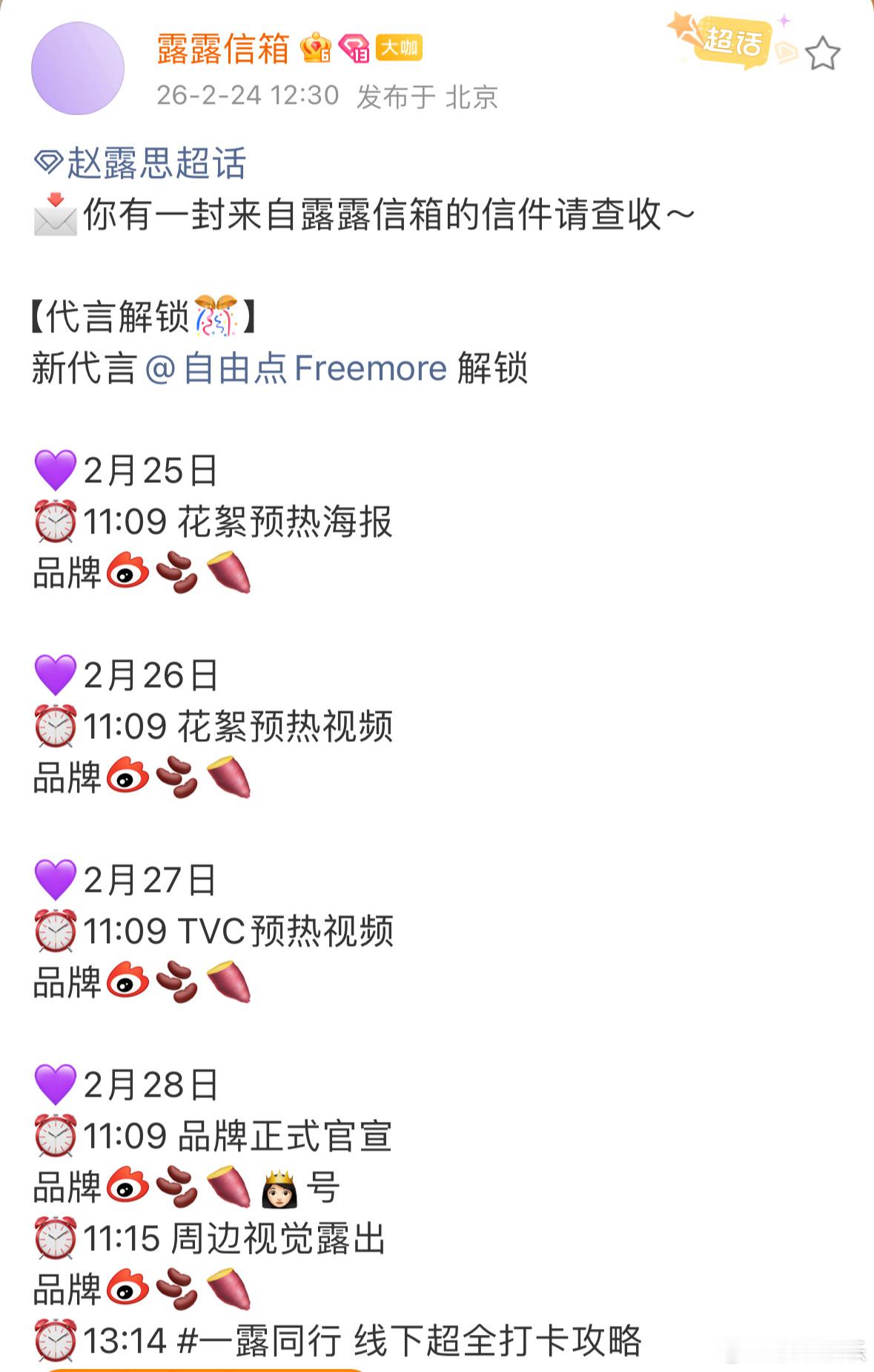 赵露思自由点预热节奏,明天开始发布预热视频,2月28日官宣,又一个代言解锁,期待