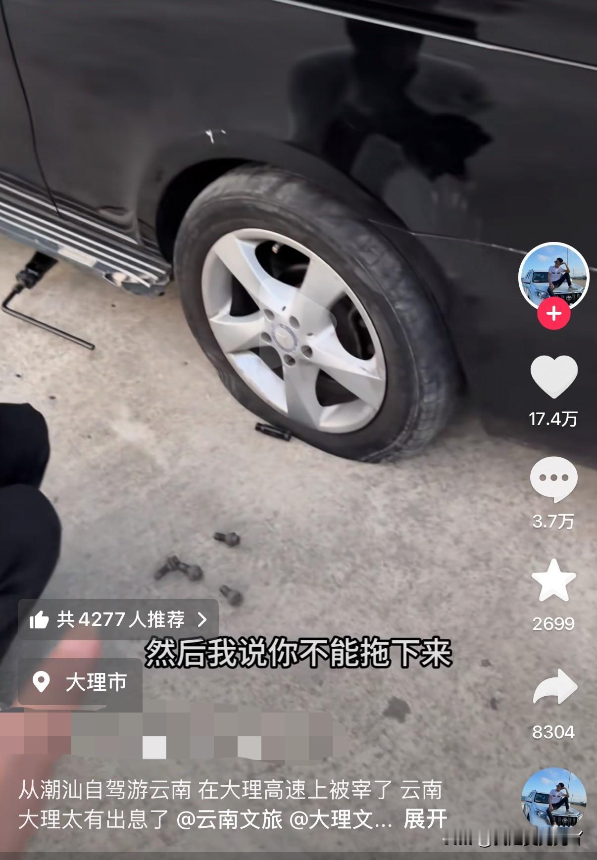 自驾游云南大理车胎被扎拖车4公里被收费1400元,关键还是交警帮叫的救援,这收费