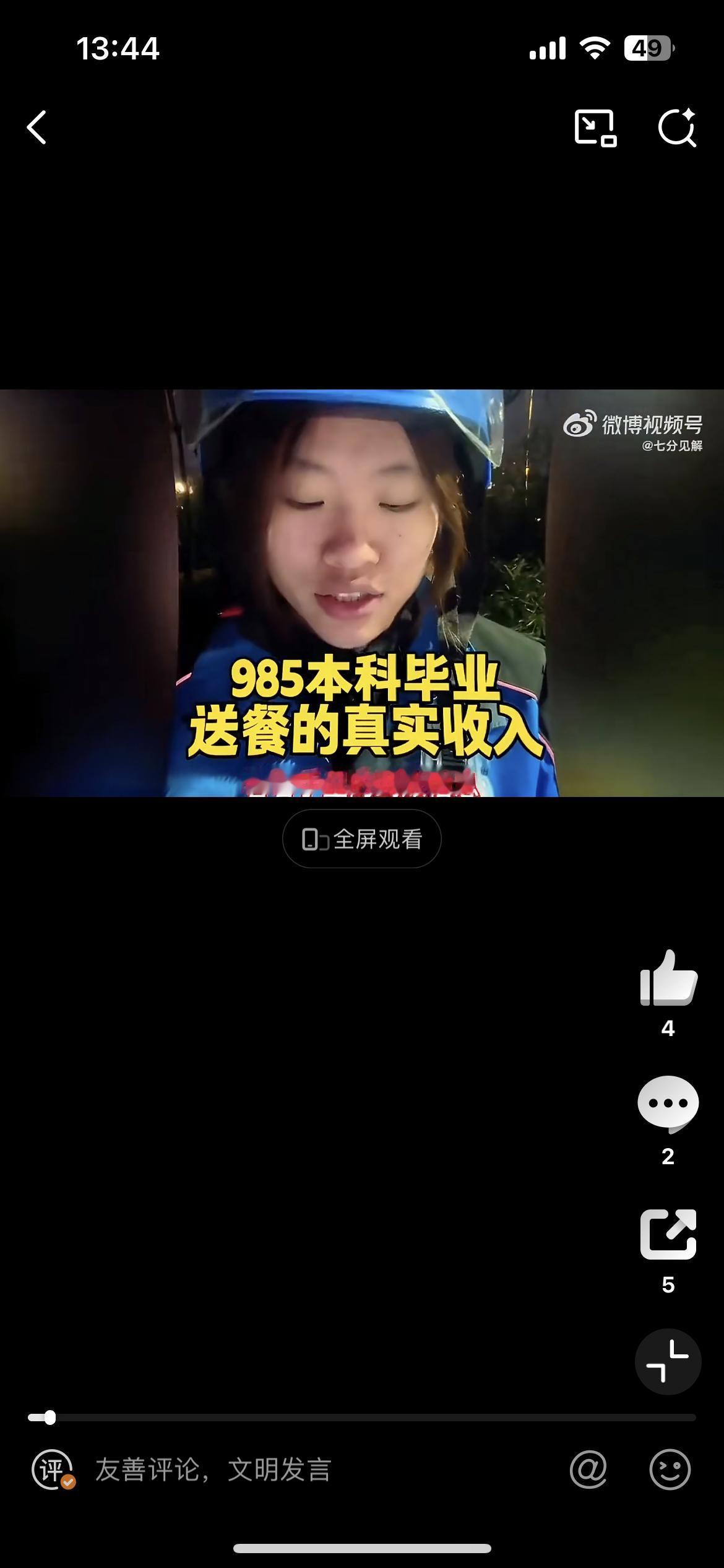 这个跑外卖的女孩自称毕业于985,上个月跑外卖收入3890,一共跑了900单,前400多单每单4块,后面的5块。跑了28天,好想休息,胃病犯了。挣的这点辛苦钱给了妈妈1600多块的医药费,租房子、租车、修车等等,为了省钱都是馒头就咸菜,很少吃上热乎饭,艰难的活着。兼职跑外卖收入
