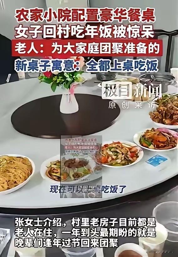 有心了!湖北,一女子被亲戚邀请回村吃年饭,本以为是走走过场,不料,到了吃饭时,她发现餐桌居然是电动的,而且一桌就能坐15人,和豪华酒店的桌子一模一样,寓意“全部上桌吃饭”。网友:这才是吃团圆饭该有的样子! 故事的主人公李悦,生活在城市,平日里工作忙碌。临近过年,她收到了乡下亲戚的邀请,回村一起吃年饭。在她的印象中,乡村的年饭虽然热闹,但形式上大多较为简单,不过是大家聚一聚,走走过场而已。然而,这份邀请饱含着亲戚们的热情,她也想念家乡的亲人们,便欣然答应了。 那天,李悦早早地踏上了回乡的路。一路上,她回忆着小时候在村里过年的场景,心中满是期待。到达亲戚家时,村子里热闹非凡,鞭炮声此起彼伏,到处洋溢着浓浓的年味。亲戚们热情地迎接她,嘘寒问暖,让她感受到了久违的亲切。 时间临近中午,年饭即将开始。李悦跟着亲戚们来到餐厅,眼前的一幕让她愣住了。只见餐厅中间摆放着一张电动餐桌,十分气派,和她在豪华酒店里见到的桌子一模一样。仔细一看,这桌子还特别大,一问才知道,一桌居然能轻松坐下 15 人。 李悦满心惊讶,在她的认知里,乡村的年夜饭大多是几张小桌子拼凑在一起,大家挤挤挨挨地吃饭。可眼前这张电动餐桌,不仅看起来高档,而且设计巧妙,转起来方便大家夹菜。亲戚们笑着告诉她,选择这样的桌子,是希望一家人都能围坐在一起,寓意着“全部上桌吃饭”,一个都不能少。 当饭菜陆续上桌,满满当当摆了一大桌,都是地道的乡村美食。红烧猪蹄色泽诱人,香气扑鼻;粉蒸肉软糯可口,入口即化;还有那自家腌制的腊鱼腊肉,散发着独特的香味,每一道菜都勾起了李悦儿时的回忆。 大家纷纷入座,电动餐桌缓缓转动,每个人的脸上都洋溢着幸福的笑容。长辈们一边给晚辈夹菜,一边讲述着过去一年的趣事,孩子们则在一旁嬉笑打闹,欢快的氛围弥漫在整个房间。李悦看着这温馨的场景,心中感慨万千。她原本以为只是简单的聚会,却没想到亲戚们为了这顿年饭如此用心,这张特别的桌子,让大家之间的距离更近了,团圆的氛围也更加浓厚。 饭后,李悦按捺不住心中的喜悦,将这一幕分享到了网上,还配上了那张电动餐桌和大家其乐融融吃饭的照片,并写下了自己的感受。网友们看到后,纷纷点赞留言。有人说:“这才是吃团圆饭该有的样子,热热闹闹,和和美美。”还有人羡慕地表示:“这样的乡村年饭,充满了浓浓的亲情味,让人向往。” 这顿乡村年饭,因为那张特别的电动餐桌,变得与众不同。它不仅承载着丰盛的美食,更传递着亲戚们对团圆的重视和对亲情的珍视。在这个快节奏的时代,这样一场充满心意的年饭,让李悦深深感受到,无论走多远,家乡的亲人和那浓浓的年味,永远是心中最温暖的港湾。