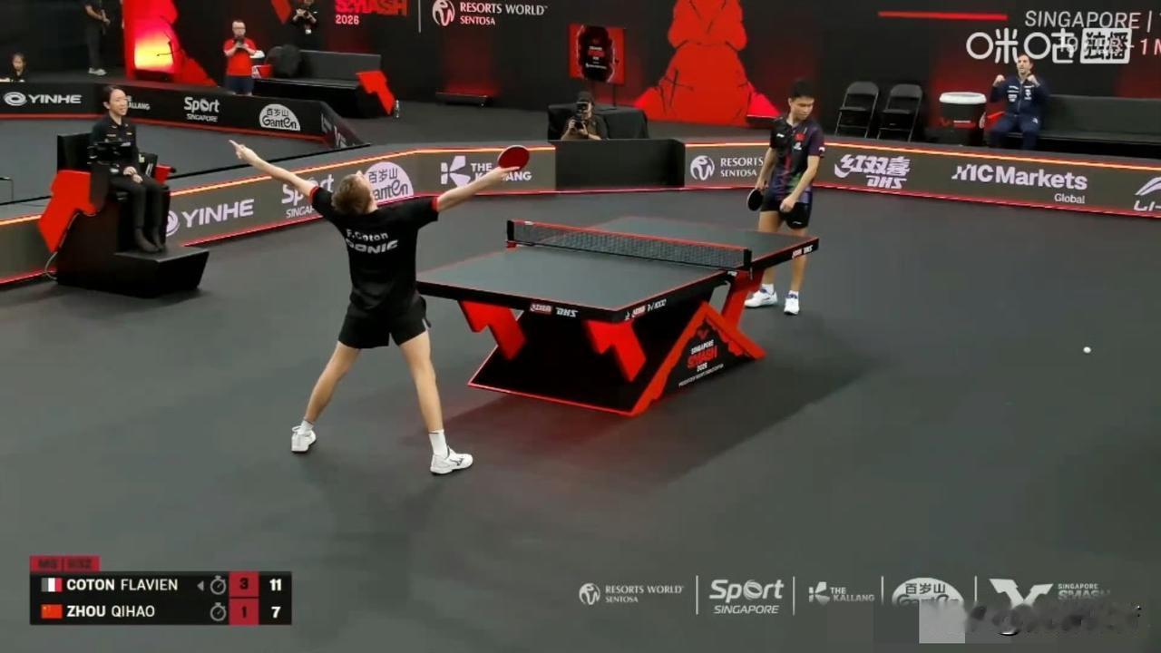 周启豪1-3不敌法国选手弗拉维安·科顿,止步新加坡大满贯男单32强,比分:14-12、6-11、3-11、7-11。首局咬下后,后三局没能稳住节奏,没能把握住机会,遗憾出局。 科顿正是法国年轻选手,近期连赢强手、进步极快,加上勒布伦兄弟等一批新人冒头,法国乒乓整体确实在快速崛起,外战压力越来越大。