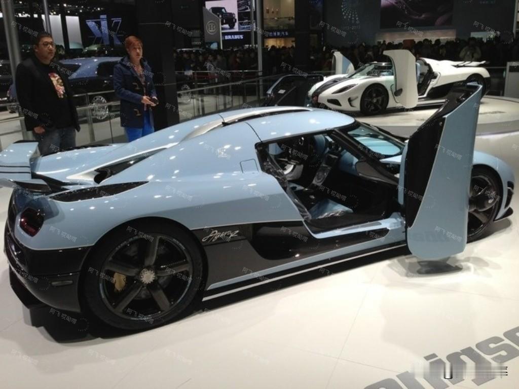 2013年上海车展两辆禾希小跑车 科尼赛克Koenigsegg Agera R,全球仅限量25台,中国大陆仅有5台。照片拍摄于2013年上海车展,现场白色的Agera R与蓝色车型一同进入国内市场,分别被赋予了“圣”与“King”,我的评价是没有冰箱彩电大沙发,不咋样。科尼赛克跑车 科尼塞克rs 超跑展览 mg超跑 威尔士超跑 赛克赛克赛车
