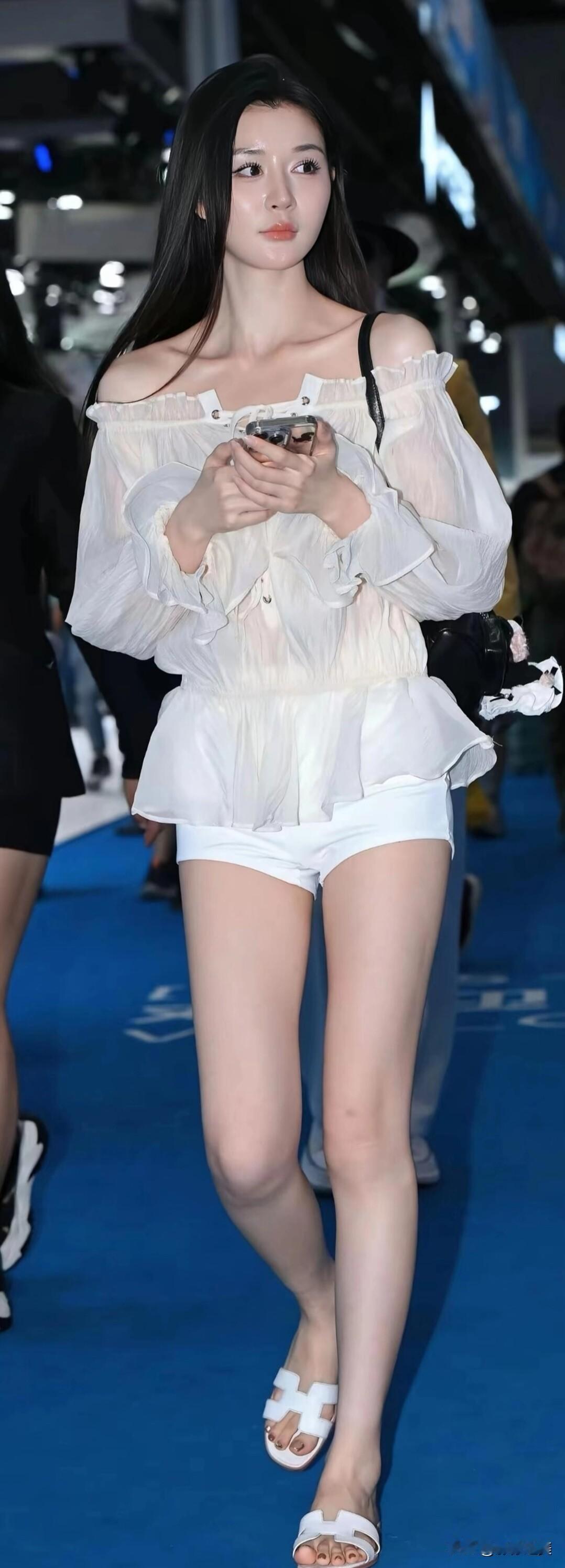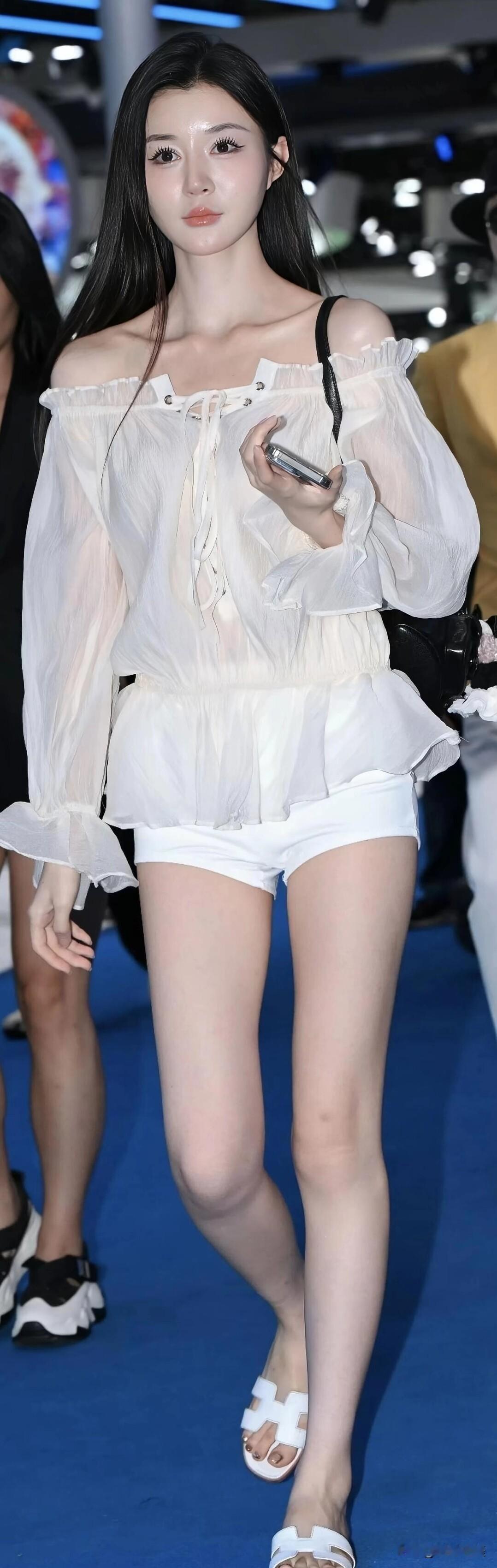 白色雪纺衫搭配白色短裤,清爽又显腿长,配上同色系拖鞋,夏天这样穿又凉快又好看。