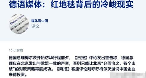 德国访华行程即将启动,而德国媒体却发出了担忧的声音,或许在他们看来,访华是一个“面子工程”,而德国真正需要做的,是与欧盟保持共同的立场与态度,从这不难看出,欧洲被逐渐“边缘化”,他们急需一个突破口。 首先咱们要清楚一件事情,那便是在以前,英法德等欧洲国家都有过属于自己的辉煌,而随着美国的崛起,他们在国际地位上渐渐处于下风,甚至整个欧洲都渐渐被“边缘化”。 如今以法国、英国为首的欧洲国家也在试图修复与中国的关系,尝试建立多元化外交与贸易,可“中国威胁论”毕竟在他们当中渲染了很长时间,不少人还是愿意和美国建立合作关系。 德总理默茨曾经表示,宁肯跟着美国“吃亏”,也不愿意改变自己的立场,如今德国也加入了访华的队伍中,这对于中德关系来说,或许是一次突破。
