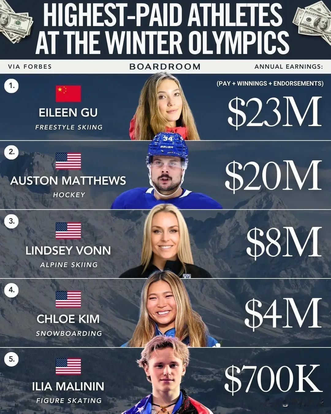谷爱凌的商业价值太高了,2025年,全年总收入2300美元,折合人民币1.6亿元,在全世界的所有冰雪运动员当中,收入水平位于第一位,在目前的所有中国运动员当中,她的收入水平也是遥遥领先的,在她的总收入当中,99%以上的收入都是来源于商业收入,赛事收入不足1%,可见运动员的核心价值在于商业品牌。谷爱凌的收入为什么这么高呢?个人觉得,一是形象好,二是成绩好,第三条尤为重要,至关重要,朋友们可以猜一猜,第三条是什么?