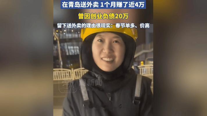 青岛冷风中的热乎劲儿:95后河南夫妻春节送外卖,4万背后藏着这些细节。 河南来的小两口,这个春节把青岛的大街小巷跑了个遍。凌晨三点的写字楼楼下,丈夫正给晚归的白领递奶茶,手套上结着霜;妻子在菜市场门口等单,怀里揣着暖宝宝,是昨天给客户送药时对方硬塞的。 创业亏了20万,俩娃在河南老家由老人带。大年初二视频时,3岁的儿子举着年画喊“爸妈快回家”,妻子挂了电话抹眼泪,转身接了个去郊区的大单——那单能赚80块,够给娃买两本绘本。 他们的电动车尾箱里,总放着个铁饭盒,装着提前蒸好的馒头。饿了就着冷风啃两口,丈夫总把热乎的那半给妻子:“你比我怕冷。”收工后回到10平米的出租屋,两人会对着记账本算:这个月还了5000,还差19万5…… 青岛的外卖员说,这对小夫妻从不挑单,暴雨天别人歇着,他们套着雨衣照样跑。“不为别的,就想让娃明年能来青岛过年。” 你身边有这样为日子使劲儿的人吗?评论区说说他们的故事,给这对夫妻鼓鼓劲~ 觉得暖心的,转发让更多人看见这份拼劲儿!