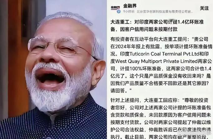 印度企业欠的1.4亿是要不回来了! 大连某企业把设备按时交付印度港口,成套系统调试完毕,开启正常使用程序。但是设备和机械的尾款和质保金,被印度两家企业拖着不给,最终拖进了破产程序。大连某企业走法律程序,申请国际仲裁也赢了。仲裁裁决明确,对方必须还钱。 官司赢了,结果两家印度公司同步启动破产重整程序。根据印度法律,企业一旦进入重整,债务清偿自动暂停。印度企业的员工工资、本地银行贷款、政府税款都在前面,大连某企业的欠款,要排在还债。要是有钱给大连某企业,还用得着走破产程序? 实话实说,只要欠下了欠款,就要不回来了。大连某企业已经不可能把款项收回来,这笔1.4亿的货款,最终只能做坏账处理,就是说账目还在,但已经坏账,收不回来了。要从企业利润里面,减掉这1.4亿的坏账,基本上白做了。当然成本不是1.4亿。1.4亿货款只是最终的成交价,成本应该没这么高,但是仍然还是巨大的损失。 大连某企业应该揪出责任人,该怎么处理,得让责任人付出代价才行。 跟印度企业做贸易,都说了一百遍,不能只要定金,要收全款才能发货和调试装备。哪怕是大连某企业把装备都运过去了,先不给印度港口安装机械,先把款项收到,再去安装和调试,这才是正确的贸易路线。 总而言之,就是大连某企业的领导层,出现问题,不知道怎么去制衡印度企业,更不懂得怎么拿捏印度,最终自己把自己坑了。明知道印度企业的信用度极低,还去上赶着跟人家做买卖。你做买卖也没问题,你把款先收回来,再去处理后续事项。结果你款都没收,把设备调试好了,都在港口正常工作了,谁还给你付款。又不可能把设备给你卸下来,再重新送回来,那也不可能。 所以这次宣传大连某企业的光辉事迹,不是说同情这家企业,而是要最大限度的提醒其他企业,要以这家大连某企业的事迹,引以为戒,不能再犯错误了,否则那就是自找的。