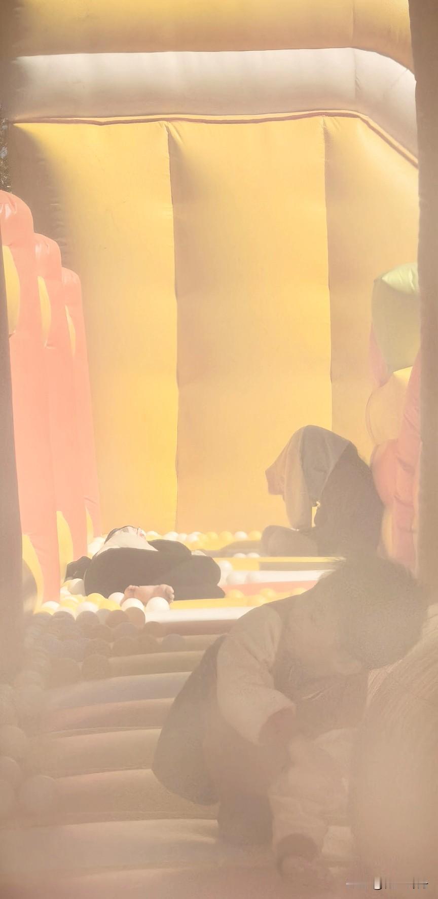 小编没有小孩?充气堡一般规定太小的孩子,可以有一位家长进去陪,如果刚刚学会走路的小宝宝,则必须要有一位家长进去陪。当初我就被要求进去陪,但我没有在里面躺着睡,估计这位家长带孩子太累了[捂脸哭][捂脸哭][捂脸哭]