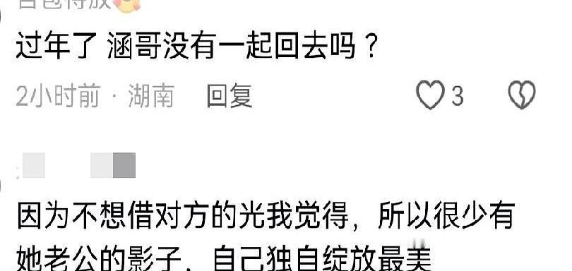 杨乐乐今年过年自己回娘家,全程没提汪涵,连她爸妈都当没这女婿一样,绝口不问。 这事儿让不少网友觉得不对劲,哪有丈母娘不关心女婿为啥不回来的? 说实话,这对夫妻近几年看着是挺生疏的。 汪涵老在外面忙,杨乐乐自己带着孩子生活,俩人各过各的,连年夜饭都没一起吃。 难怪大家猜来猜去,怀疑他俩是不是悄悄离了。 不过杨乐乐之前澄清过,说没离婚,就是各自有事业要忙,不想把私生活摊开给大家看。 要我说,俩人都四五十岁了,到了这个年纪,可能早就不是整天腻歪着谈感情的时候了。 各有各的天地,各自舒服也挺好。 你们觉得呢,夫妻到了中年,这种“各忙各的”模式你能接受吗?