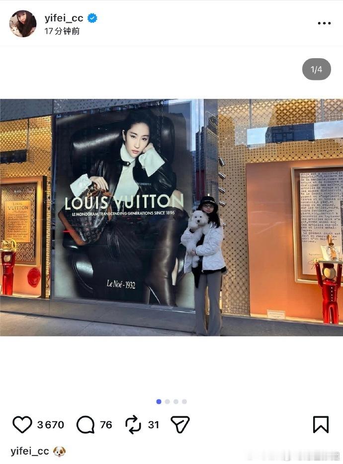 刘亦菲跟自己的地广合照刘亦菲打卡地广刘亦菲和LV地广同框出镜,茜茜亲自认证:这张
