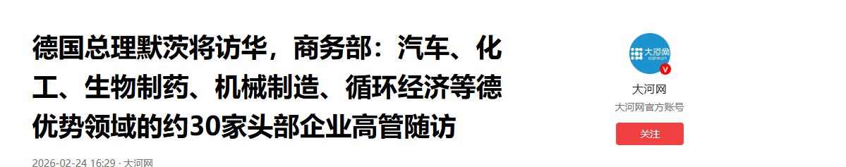 德国总理默茨顶着骂名也要来,带半个商界访华,打了谁的脸? 德国那边的媒体又坐不住了,眼看着总理默茨的专机就要落地北京,柏林的舆论全是酸话。 就在默茨准备开启他上任后的首次访华之旅时,德国国内的报纸也没闲着,拼命给他泼冷水,喊话要跟中国保持距离。 可是,看看默茨这次带来的豪华天团,那些喊着“脱钩”的人恐怕要失望了。默茨这次不光人来了,心也跟着来了,甚至还借着咱们马年的吉言,说是要给德中关系装上“新马达”。 说实话,默茨这次能来,确实不容易。自从去年5月他坐上德国总理的位子,外界就一直盯着他的对华政策。 这都快一年了,才敲定这次2月25日的行程,既是“破冰”,也是为了给未来的两国关系定个调子。 虽然德国媒体还在喋喋不休,警告默茨不要被中国“分而治之”,要跟欧盟合作,但默茨显然更清楚德国经济现在的处境。 毕竟,口号喊得再响,也填不饱肚子,德国企业的日子不好过,这时候不找中国找谁? 大家不妨看看这次随行的名单,简直就是把德国经济的半壁江山都搬来了。大众、宝马、西门子、拜耳,还有阿迪达斯,这些响当当的巨头CEO们,一个个争着抢着要来。 据说原本只有30个名额,结果申请的人数挤破了头。从侧面反映出,德国的企业家们脑子是清醒的。 不管政客们怎么鼓吹“去风险”,资本的嗅觉永远是最灵敏的。他们心里明白,离开了中国这个大市场,德国制造产量就会下降。 更有意思的是,德国媒体还在那自欺欺人,把这次高规格的访问贬低成“面子工程”,还要默茨搞什么“精准去风险”。 这种论调简直是荒谬至极。如果真是为了面子,默茨犯得着顶着这么大的舆论压力,带着这么多大老板亲自跑一趟吗? 这些媒体整天喊着要跟欧盟统一行动,其实就是怕德国跟中国走得太近,动了某些人的利益说白了,这就是典型的冷战思维在作祟,生怕中国的发展抢了他们的风头。 而且,这次默茨的行程安排也是大有深意。除了去故宫感受一下咱们的文化底蕴,更重要的是那些实地走访。 去奔驰,那是为了稳住传统汽车产业的基本盘;去西门子能源,那是为了在绿色转型上找合作。最让人眼前一亮的,是他还要去宇树科技。 这可不是随便逛逛,宇树科技那是咱们中国机器人的排面。默茨这一去,信号再明显不过了:德国人也开始眼馋咱们的高科技了。 以前中德合作,大多是德国出技术,中国出市场。现在风向变了,德国也开始想从中国这里学点东西,搞点技术互补。 因为默茨政府已经意识到,在人工智能和未来产业这些领域,中国已经不是当年的中国了。这种“中国技术+德国应用”的新模式,恐怕才是默茨这次访华真正的“重头戏”。 这对于那些还在做着“技术封锁”美梦的人来说,无疑是一记响亮的耳光。 当然,我们也不能指望默茨这一趟就能把所有问题都解决。德国国内的政治撕裂还是很严重的,一边是务实的政府和商界,想跟中国好好做生意;另一边是意识形态上头的媒体和激进政客,整天想着怎么给中国找茬。 默茨夹在中间,日子也不好过。他既要照顾国内的情绪,又得为德国经济找出路,这种“双重人格”的纠结,估计还得持续一阵子。 不过,咱们中国这边的态度一直是很明确的。大门永远敞开,想合作我们欢迎,想搞事情我们也奉陪。 默茨这次来,我们给了最高规格的礼遇,这就是大国的自信和气度。我们不搞什么“分而治之”,因为我们相信,利益捆绑才是最结实的纽带。 只要德国企业还能在中国赚到钱,只要双方的产业链还能合在一起,那些媒体的噪音就成不了气候。 接下来的两天,就看默茨怎么在北京洽谈了。是继续被国内的舆论绑架,还是拿出政治家的魄力,给中德关系开辟一条新路,全世界都在看着。 至于那些德国媒体的闲言碎语,就让它们随风去吧,毕竟在实打实的合同和订单面前,唾沫星子是最不值钱的。