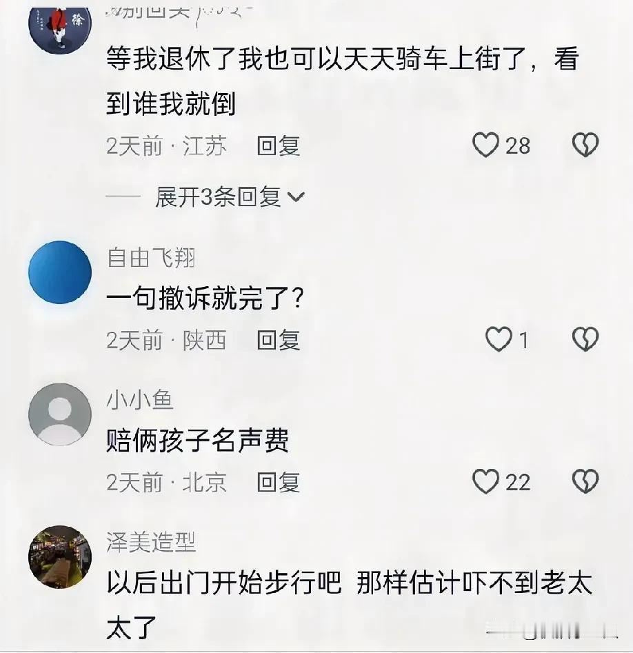 老人骑车拐弯摔了,俩初中生停下车帮忙,结果被认定要担责;好心成了麻烦,责任边界在哪? 2月上旬,福建一个路口出了这么个事,一位老太太骑着自行车左转,一辆白色小轿车先从她前面开过去,她躲了一下没撞上,接着两个初中生骑着电动车也过来了,她又往左一拐想避开他们,结果摔在地上,监控里能看到电动车当时没有减速,也没有靠右走,是左转弯的路线,而老人是直行。 两个人看到老人摔倒,立刻停下车子跑过去扶他,还打电话叫了人来帮忙,这本是一件很平常的事,可后来交警到了现场,说骑电动车的人要承担一部分责任,理由是他们在转弯的时候没有让直行的车辆先走,也没有注意看路况和减速,老人的家属因此提出要赔偿二十二万,说是电动车突然出现把老人吓到才导致他摔倒的,这件事原本定在二月二十六日开庭处理,但到了二十一号,原告那边又突然撤诉了,网上相关的帖子也都删掉了,整件事就这样没了结果。 其实关键点在于有没有发生直接碰撞,视频里没看到这种情况,老人说是因为受惊吓摔倒的,但要证明这个惊吓是电动车造成的,法律上需要说明这种惊吓是对方行为直接导致并且可以预见的结果,如果连这点都证明不了,光靠觉得被吓到很难站住脚,而且电动车本身确实有违规的地方,比如未成年骑车上路,车子还没牌照,地方监管也没跟上。 有网友觉得,孩子出发点是好的,不应该追究他们的责任,也有人认为,违反交通法规就是事实,帮助别人不能抵消对规则的破坏,这其实不是道德层面的讨论,而是规则意识的问题,两个初中生很可能不清楚骑电动车已经违法,学校也没有教过这方面内容,现在《道路交通安全法》对未成年人骑电动自行车没有设定明确的年龄限制,执法时只能依靠经验判断,容易出现偏差。 撤诉的原因没人知道,是证据不够强导致家属放弃,还是双方私下谈妥了,或者舆论压力太大怕影响不好,这些都没人出来说明,现在只知道两个孩子帮了别人,却差点要承担赔偿责任,他们当时可能只是觉得应该帮忙,没想太多,但现实是路权、责任和证据,一样都不能少。 有人问起,以后再碰上这种事还愿意停下来帮忙吗,这个问题只能自己心里有答案。