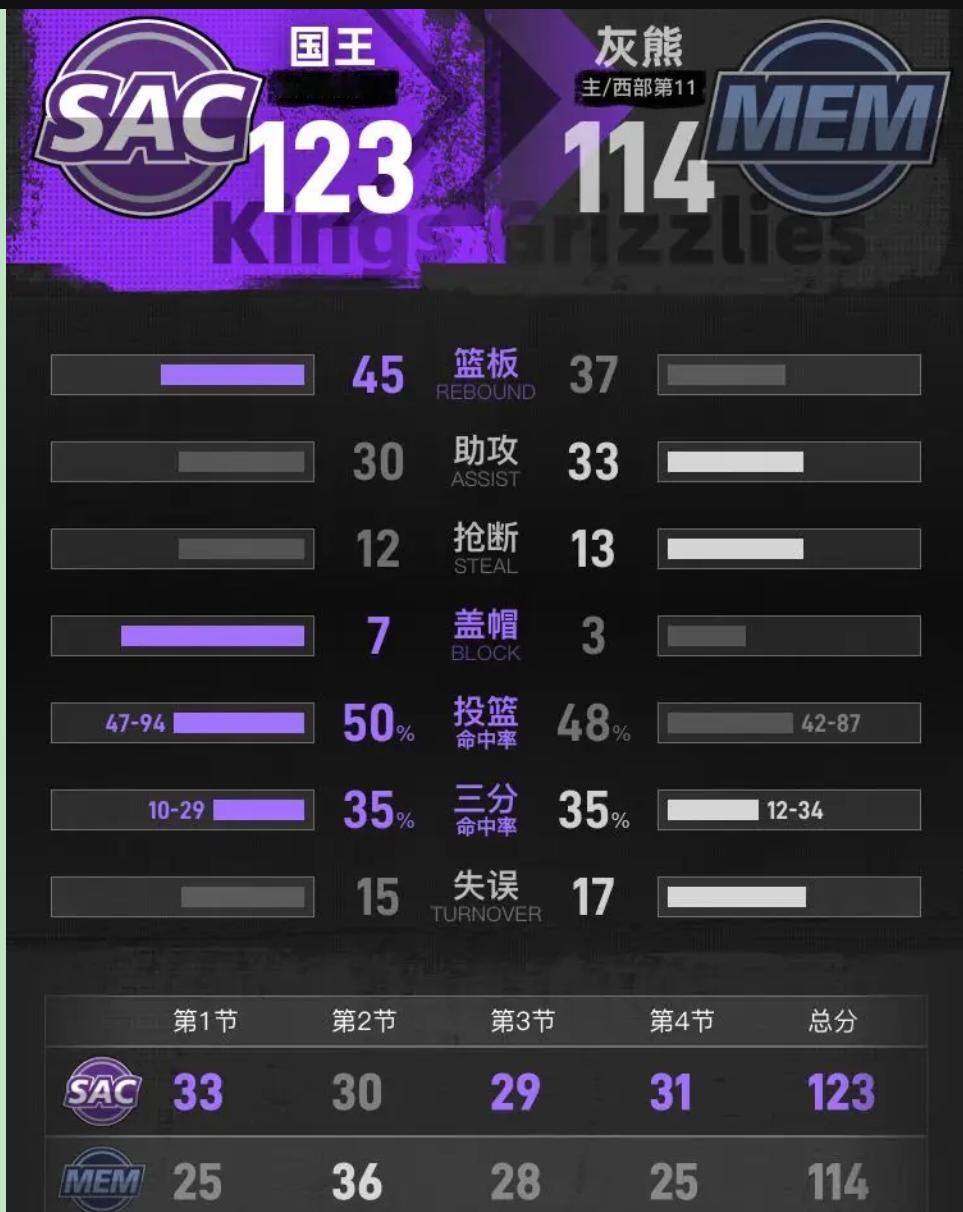 看完这场球,我关电视的手都在抖。不是激动,是尴尬。 123-114,国王赢了。可我怎么觉得,这群老炮在欺负实习生还差点翻船?德罗赞那个背打,威少那个干拔,球进了。漂亮。也可耻。 灰熊那帮孩子,工资单加起来没威少一半厚。斯莫尔21分9助攻,第三节反超那两分钟,我从沙发上弹起来了——饿过的人,眼里有火。然后呢?国王叫暂停,回来一波10-0。精准,冷血,像大人抢小孩的糖。没意思透了。 讽刺的画面在第四节。威少三分命中,咧嘴笑,跟斯莫尔握手。我突然鼻酸。那不是尊重,是告别。威少见过的风浪比这群孩子吃过的饭还多,可NBA不是养老院。 普劳登那三个三分,像三盆冷水浇在灰熊头上。可你看数据:国王全队25个助攻,威少德罗赞占了11个。球在他们手里转,其他人站着看。这叫篮球?这叫垄断。反观灰熊,小皮彭8助攻,克莱顿6个,球烫手一样传。终结那下歪了,可那股活水在流动。国王是潭死水,表面平静,底下发臭。 重建不可耻。可耻的是拒绝承认时间在走。灰熊输了比分,赢得了时间表。国王在透支信用卡,还假装自己很有钱。年轻人会记住今晚——不是因为被上课,是因为差点掀翻了桌子。 总有一天他们会回来。而国王,可能还在原地单打。威斯布鲁克25分斯莫尔21分 国王险胜灰熊
