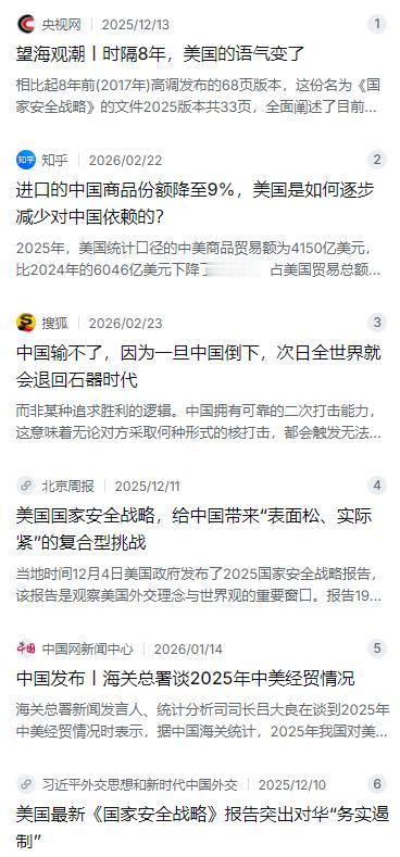 美国到底会不会向中国开战呢?就这么说吧,美国100%想开战,因为中国已经对美国霸权的冲击,远超当年伊拉克成百上千倍!但真要打起来,双方都得掂量掂量后果。 麻烦看官老爷们右上角点击一下“关注”,既方便您进行讨论和分享,又能给您带来不一样的参与感,感谢您的支持! 就说现在这个国际局势,大家伙儿茶余饭后总免不了嘀咕一句:美国跟咱们,到底会不会真干起来?有人觉得这是瞎操心,有人觉得山雨欲来。要我说,就这么跟你交个底吧:美国人心里那团火,烧得比谁都旺,要说不想动手那是假的。在他们眼里,现在的中国早就不是当年的吴下阿蒙,这冲击力,比起当年打伊拉克那叫一个成百上千倍的量级。但话说回来,打仗这事儿,尤其是跟中国打,那可就不是拍脑门就能定的,双方心里都得有个算盘,噼里啪啦打好几遍。 你得看看美国人这几年自个儿是怎么说的。翻翻他们刚出炉的那份《国家安全战略》报告,里头虽然没直接指着鼻子骂,但字里行间把咱定位成“实力近乎对等”的竞争对手 。这词儿听起来客气,实际上冷汗都下来了。这等于公开承认,地球上有且只有一家,能在经济、科技、军事上全方位动摇他的宝座。这焦虑感,比当年萨达姆在沙漠里藏几门大炮可严重多了。伊拉克那是疥癣之疾,咱们这可是心腹大患。美国现在的心态,就像一个习惯了考第一的学生,突然发现有个同桌不光成绩追上来了,还在各种竞赛里拿奖,他能不急眼吗? 可急眼归急眼,冲动是魔鬼这话放哪儿都适用。美国人再狂,也得面对一个血淋淋的现实:中美这两大经济体,早就你中有我、我中有你,掰扯不清了。虽说这些年他们在折腾啥“脱钩”,嚷嚷着要供应链“去风险”,但有些东西是刻在骨子里的 。就拿治病救人的药来说,美国市面上好多抗生素、心脏病药的原料,源头还捏在咱手里 。真要是撕破脸,美国老百姓药房里的药首先就得断供,那物价还不直接窜上天?这经济崩盘的后果,华尔街那帮大佬用脚趾头都能算出来,谁也扛不起这个雷。 再说了,就算经济账能忍,军事账更是道过不去的坎儿。这不是吓唬人,咱们手里有实实在在的家伙事儿。别看咱们承诺不首先用核武器,但这句话的底气,来自于藏在深山、游弋大洋深处的“东风快递” 。斯德哥尔摩那个和平研究所的数据摆在那儿,咱们有几百枚能跨洲际的弹头 。这就意味着,甭管美国人先动手多狠,只要没能一口气把咱们所有家底全端了,那接下来迎接他的,就是能把纽约、洛杉矶从地图上抹掉的报复。这种“互相确保摧毁”的恐怖平衡,就是中美之间最冷静的刹车片,谁也不敢轻易去踩那个油门。 所以你看,现在的局面特别有意思。美国人一边在咱们家门口搞什么“第一岛链”,拉着日本、澳大利亚那些小弟搞小圈子,想把咱们困住 ;另一边又在台海问题上阴阳怪气,嘴上说“维持现状”,背地里小动作不断 。但这恰恰说明他心虚了,不敢正面硬刚,只能搞这种“代理人”加“无人化”的消耗战 。美国人学精了,知道直接跟中国这种体量的对手在地面冲突中较量,那是不折不扣的噩梦。 咱们这边呢?心里跟明镜儿似的。海关总署的数据也说了,去年中美之间还有四万多亿人民币的买卖在做 。这就是现实,斗归斗,闹归闹,日子还得过,钱还得赚。咱们现在的路子走得很稳,就是保持战略定力,你想打贸易战、科技战,我接着,但绝不让你把我带节奏拖进战争泥潭。你搞你的“门罗主义”,盯着拉美后院搞事儿,我继续推我的“一带一路”,跟全世界做生意 。 说到底,美国想打仗的念头就像那水里的葫芦,按下去又浮起来,但真让他扣动扳机,他没那个胆,也没那个本钱。咱们这艘大船,只要自己稳住舵,不翻船,任凭风浪再大,最后也能平稳驶向复兴的彼岸。这场博弈,比的不是谁拳头抡得圆,比的是谁憋气时间长,谁的内功更深厚。