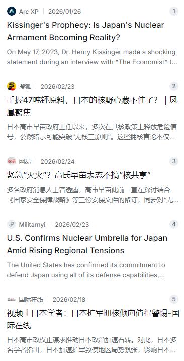 美国专家摊牌了!日本拥核之日,就是国家灭亡之时。很多人以为,日本囤积核材料是为了“自卫”,是为了摆脱美国的控制。错了!真相是,日本是在给自己挖坟墓。在中美俄的战略棋盘上,没有任何空间允许一个拥核的日本存在,谁敢越雷池一步,谁就得死! 麻烦看官老爷们右上角点击一下“关注”,既方便您进行讨论和分享,又能给您带来不一样的参与感,感谢您的支持! 国际战略学界最近流传着一个罕见的共识:在中美俄这三个拥有全球最强核力量的棋盘上,绝对不可能容下一个拥核的日本。这并非危言耸听,而是基于地缘政治的残酷现实。曾担任美国前国务卿的基辛格在生前就发出过精准预言,他认为日本可能在五年内迈入核国家行列,而这一进程一旦启动,必将引发连锁反应 。现在的局势正一步步印证这位战略大师的担忧,日本囤积的那些核材料,表面上看是为了能源自给,实则在给自己挖一座巨大的坟茔。 日本在核材料储备上的家底到底有多厚?根据多家智库的跟踪数据,截至2024年底,日本囤积的分离钚总量高达44吨以上,其中约8.6吨存放在本土,其余则寄存在英国和法国的后处理厂 。这些钚材料虽然大部分是反应堆级,纯度不及武器级,但现代核技术早已表明,反应堆级钚同样可以用于制造核爆炸装置。按一枚核弹需要8公斤钚材料换算,日本手中的库存理论上足以制造数千枚核弹头 。更可怕的是,日本还拥有约1.8吨的高浓缩铀,这些敏感材料足以让它在极短时间内跨越核门槛 。 日本右翼政客这几年越来越不安分,他们频繁对“无核三原则”动手动脚。高市早苗上台后,曾在国会答辩时含糊其辞地表示已经下达指示研究修“不运进核武器”的原则,理由是这条规矩会限制搭载核武器的美军舰艇停靠日本港口,削弱所谓的核威慑力 。这种说辞其实是掩耳盗铃,明眼人都看得出来,日本右翼的真实意图是想摆脱战后体制的束缚,趁着美国战略重心转移的空档,实现国家“正常化”的野心。 但美国人真的会允许日本拥有独立核武装吗?看看美国官方的表态就清楚了。2026年2月,美日在华盛顿举行了所谓“延伸威慑”对话,美方虽然重申了包括核武器在内的保卫日本承诺,但对“核共享”话题却只字不提 。美国国务院发言人在回应相关问题时,话里话外都在夸日本是核不扩散的领导者,这表面是表扬,实则是在敲打东京不要轻举妄动 。对美国而言,日本可以是它在亚太的前哨基地,但绝不能变成一个拥有独立核按钮的失控盟友,这种底线从未动摇。 在这场涉及核武的博弈中,中俄的态度同样毫不含糊。中国外交部多次点名警告,直指日本右翼正在推动扩武强军,首相官邸高官的拥核表态暴露了其危险的动向 。中国军控与裁军协会联合多家机构发布的报告明确指出,日本囤积核材料绝非偶然,而是其核野心长期积累的铁证 。俄罗斯方面的反应更直接,除了外交部发言人公开表示日本拥核将直接违背《不扩散核武器条约》义务外,俄军直接在北方四岛附近启动了长达两个月的军事演习,用实打实的行动向东京亮明态度 。朝鲜的反应更激烈,直接公布新型潜艇完工的照片,点名警告这个“战犯国家” 。 最讽刺的一幕出现在日本国内。作为全球唯一遭受过原子弹轰炸的国家,日本民间原本应该拥有最强烈的反核意识。广岛和长崎的核爆幸存者团体至今仍每年组织集会,反对政府任何试图拥核的举动 。但现实是,随着战争记忆逐渐远去,年轻一代对和平宪法的敬畏正在淡化,那些经历过核爆苦难的老人已至耄耋之年,当这些声音最终消失后,日本国内的反核堤坝还能守住吗?学者们担忧的正是这种“和平遗忘” 。 从技术角度看,日本距离核武装确实只差一道政治指令。美国专家有个形象的比喻:日本只需要拧动一把螺丝刀,就能造出核武器 。日本的核工业体系完整,拥有后处理技术和离心浓缩能力,火箭技术和精密加工更是世界一流。F-35A战斗机本身就具备挂载核航弹的能力,采购的“战斧”巡航导弹也是核常兼备的平台 。这意味着一旦政治决断下达,日本不仅能在短期内造出核装置,还能快速形成投送能力。但正是这种能力,让所有邻国如坐针毡。 如果说日本右翼的拥核梦真有实现的可能,那一定是因为他们误判了国际格局的底线。中美俄三国在绝大多数问题上都存在分歧,唯独在日本核武装这件事上立场高度一致:绝不允许!原因很简单,一旦日本拥核,亚太地区的核多米诺骨牌就会接连倒下。韩国会怎么想?它面对朝鲜的核威胁本就焦虑,如果再看到日本也跨过门槛,拥核民意早就超过七成的韩国很可能立刻跟进 。到时候,整个东北亚将陷入一场失控的核军备竞赛。 对日本自身而言,拥核带来的不是安全,而是灭顶之灾。这个岛国国土狭长,人口稠密,缺乏战略纵深,根本承受不起任何形式的核冲突。即便它造出核武器,在中美俄的三重压力下,这种所谓的威慑力也会被瞬间抵消。