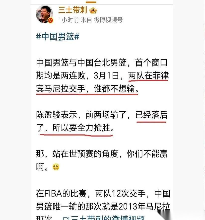 话筒递过来。 陈盈骏没躲,往前凑了凑,眼神直勾勾地盯着镜头。 “我们没有退路了。” 这话一出来,旁边的闪光灯都好像停顿了一下。他说的不是别人,就是即将对阵的中国男篮。 “第一阶段,两边都是两连败,谁也别说谁。”他顿了顿,一字一顿,好像每个字砸在地上都能弹起来:“3月1号这场球,我们的目标就一个,击败中国队。” 话说完了。 这已经不是什么客套的场面话,这是直接把战书拍在了桌子上。 球,等于直接从菲律宾,隔空扔给了正在带队的郭士强。一边是已经把狠话撂这儿了,一边是顶着压力必须得赢。这下好了,赛前的火药味儿,直接拉满。 说白了,赛前叫板都是虚的,最后还得看场上谁的拳头硬。